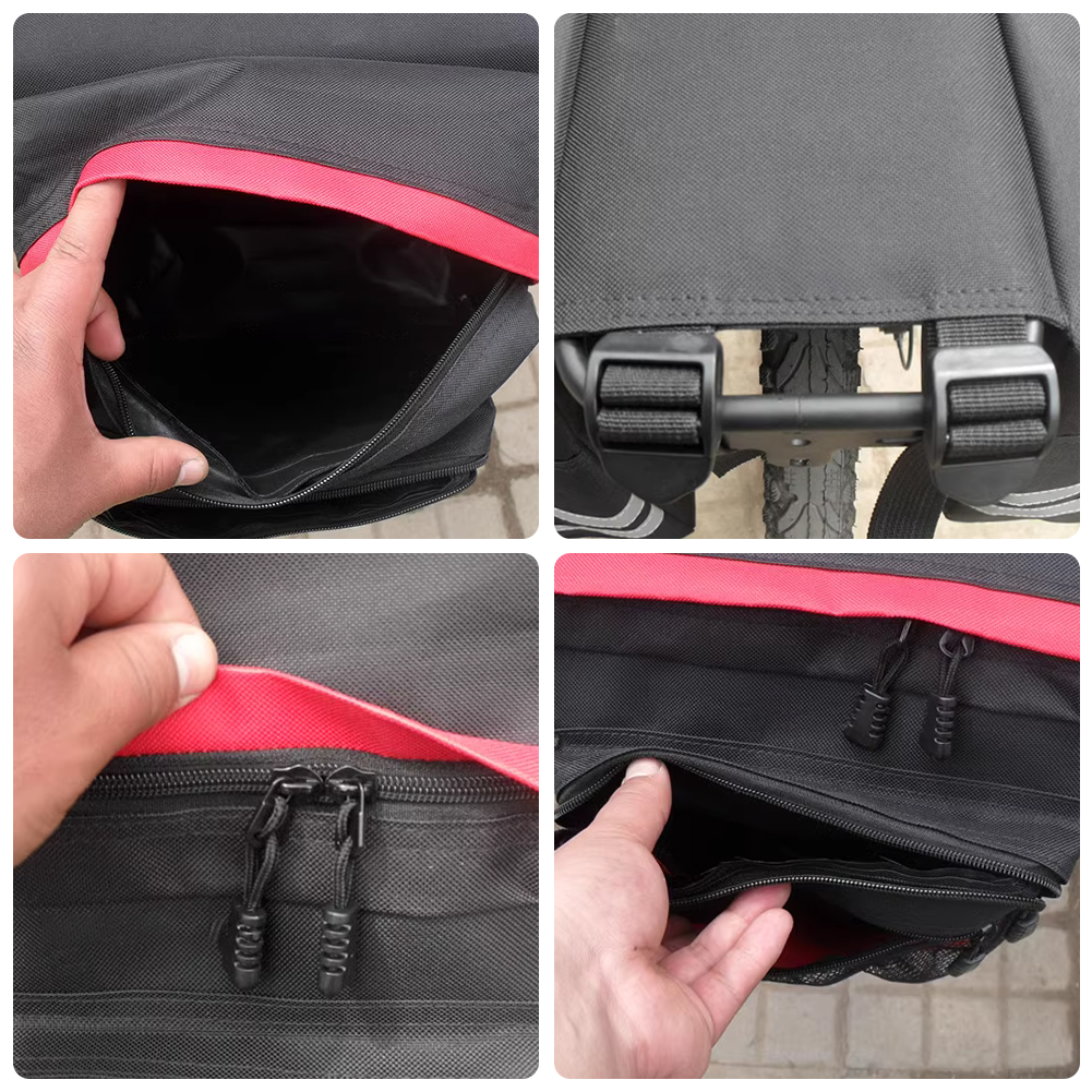 Waterproof Function:Large Capacity Saddle Bag is made of polyester fiber material, not easy to penetrate water droplets, with waterproof performance. A zipper has a nylon layer to prevent water from entering the zipper slot, but it is not recommended to be exposed to heavy rain for a long time.