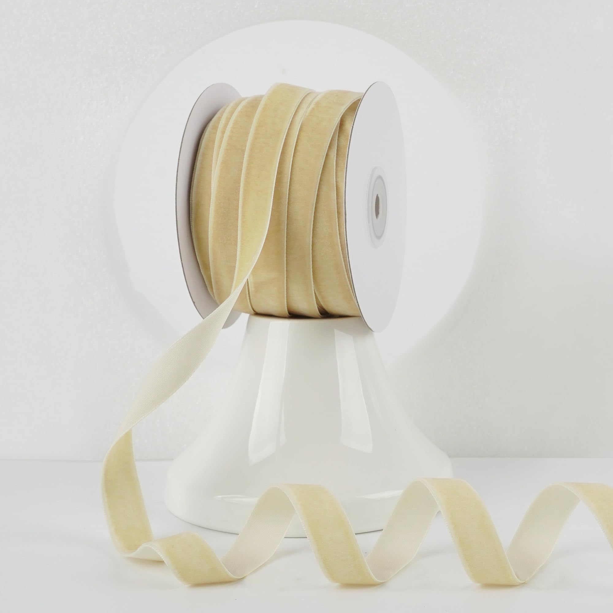 SINGLE FACED BEIGE VELVET RIBBON *This versatile ribbon is ideal for any occasion—weddings, birthdays, holidays, baby showers, and more. Whether you're decorating or crafting, this easy-to-use velvet ribbon offers a luxurious touch that enhances your projects and gifts, ensuring a charming finish every time! [ PRODUCT DESCRIPTION ] [ FEATURES OF OUR VELVET RIBBONS ] Crafted from high-quality nylon, this double-faced ribbon provides a soft, plush texture that adds elegance to any creation. Its durable construction ensures it holds its shape beautifully, making it perfect for bows, gift wrapping, floral arrangements, and home décor. With its refined appearance, this ribbon allows you to create stunning accents that leave a lasting impression on your guests and loved ones. [ Notice ]