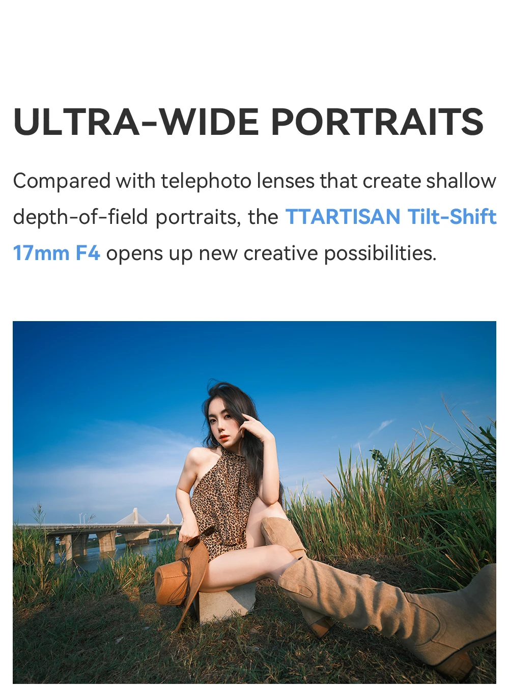 Brand Name : TTArtisan Weight : 1001g and above Origin : Mainland China Type : Fixed Focus Lens Use : Camera Maximum Aperture : f/4.0 Focus Type : Wide Angle-Prime Lens Type : Manual Focus Mode : MF Launch Date : 2025 Full Frame : Yes Scene Type : Business,Human,Architecture,Special,Scenery,Still Life,Travel,starry sky Minimum Aperture : F16.0 Number of Diaphragm Blades : 10 Blades Applicable Camera Specifications : Medium Frame Mirrorless Camera,APS-C Mirrorless Camera,Full Frame Mirrorless Camera Ttartisan Model : TS 17mm f4 High-concerned chemical : None