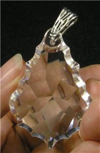 Beautiful large clear Czech Crystal Baroque cut pendant, mounted from a beautiful .925 solid sterling silver bail for a beautiful and elegant piece.