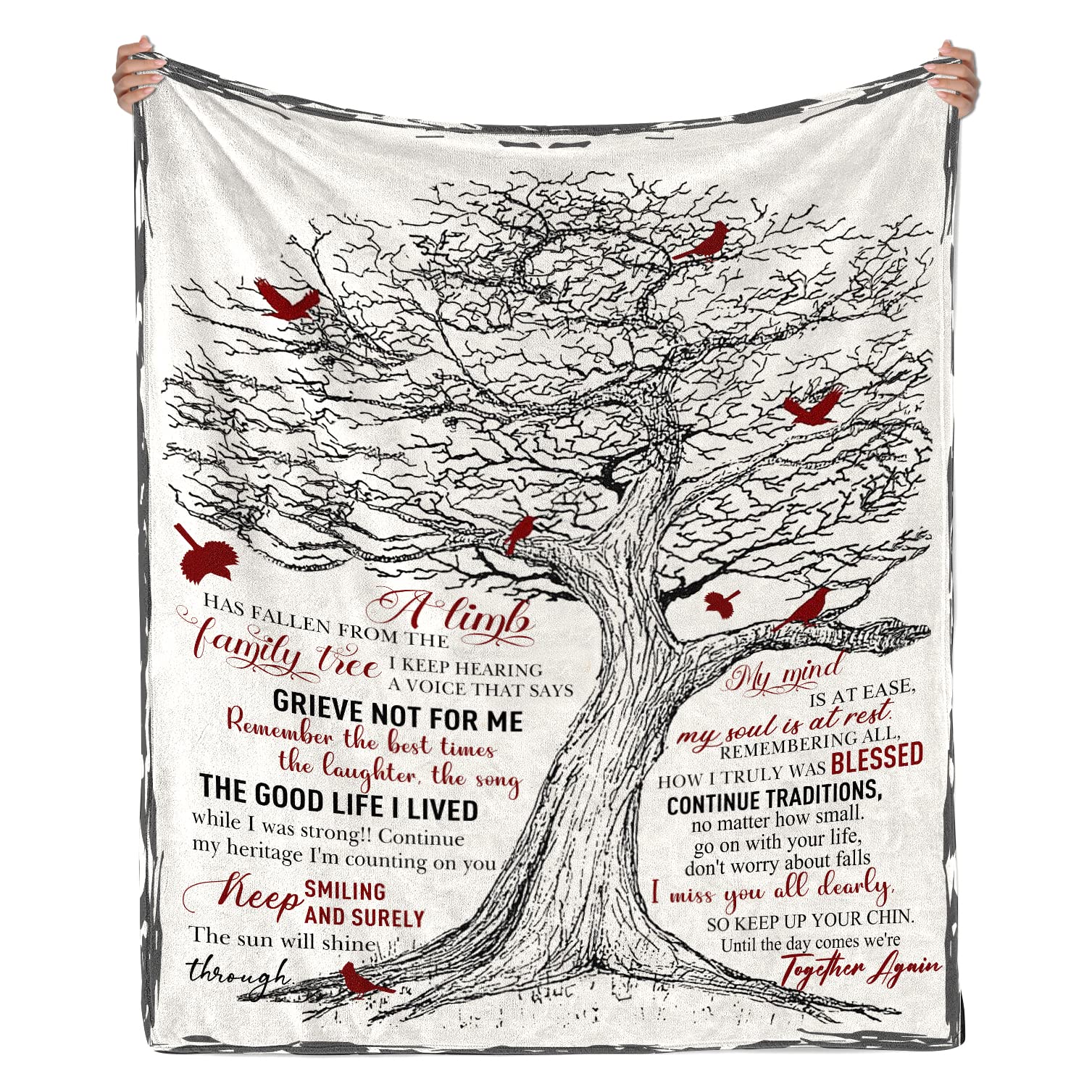 đˇăCondolences Gift IdeasăThis blanket is a gift to remember son, daughter, mom, dad, grandpa, grandma, brother, sister, pet, etc. You can give it as a gift to someone who has lost a loved one to bring him/her some comfort, warmth and encouragement.