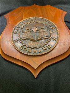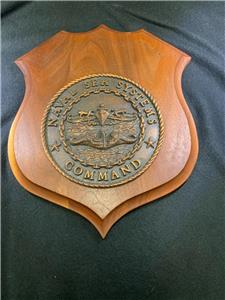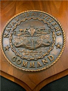 This auction is for a vintage and hard to find U.S. NAVY NAVSEA NAVAL SEA SYSTEMS COMMAND Brass & Wood Plaque.This 12" x 10" Plaque is in very good condition. There are 2 small indentations on the top where the named individuals Plaque was removed. Numerous individuals and teams have been rewarded with the Naval Sea Systems Command Plaque, which is considered a high accomplishment in the (NAVSEA).