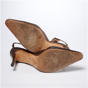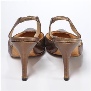 A pair of Manolo Blahnik bronze leather slingback pumps shoes.