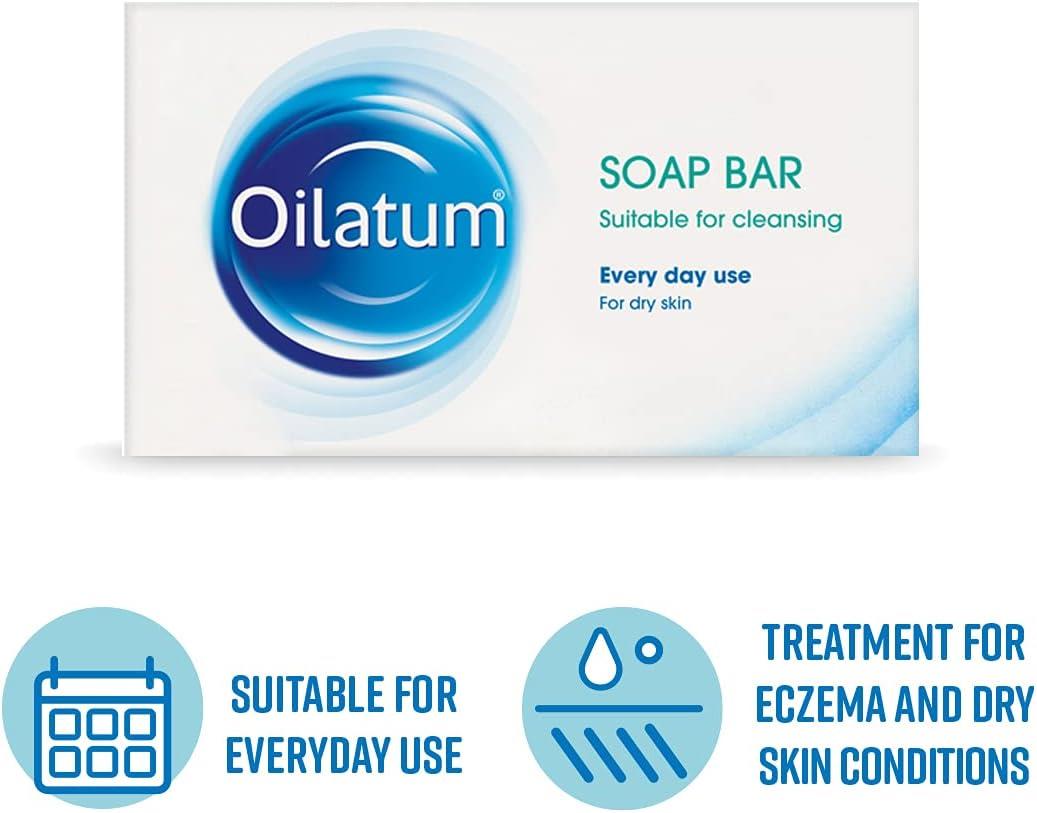 Oilatum Soap Bar is a dermatologist-recommended gentle cleanser designed for dry, sensitive, and itchy skin. Perfect for daily use, it soothes irritation, hydrates deeply, and helps relieve eczema and psoriasis symptoms, leaving your skin soft and moisturized.