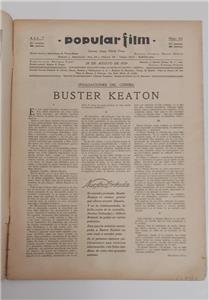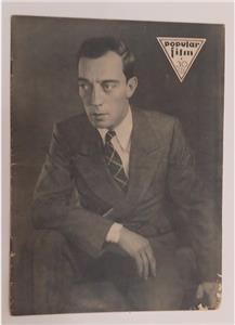 VINTAGE 1930 POPULAR FILM SPANISH MAGAZINE WITH WONDERFUL BUSTER KEATON COVER (AND MULTIPLE INTERIOR PHOTOS) AND WITH INTERIOR ARTICLES AND PHOTOGRAPHS INCLUDING GRACE MOORE, ALICE WHITE, NORMA TALMADGE, LAUREL AND HARDY, ROSITA MORENO AND MORE. MAGAZINE IS APPROX 13.5" X 9.5" . MAGAZINE IS IN GOOD CONDITION WITH LOWER CORNER CHIPS/TINY TEARS, EDGE AND SPINE WEAR. POSTAGE IS $12.65 IN THE UNITED STATES AND BY ARRANGEMENT OVERSEAS.