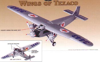 This is a Ertl 36910 1:72 Scale Texaco - Wings Of Texaco #7 (1999) - 1927 Ford Tri-motor Airplane (bank). These are die-cast metal and rubber wheels.