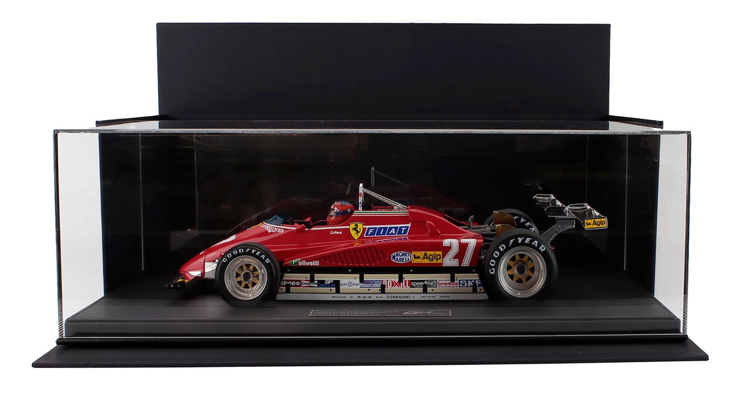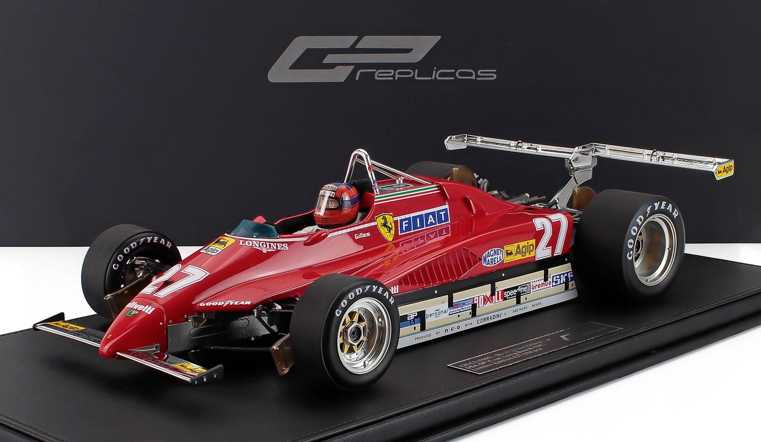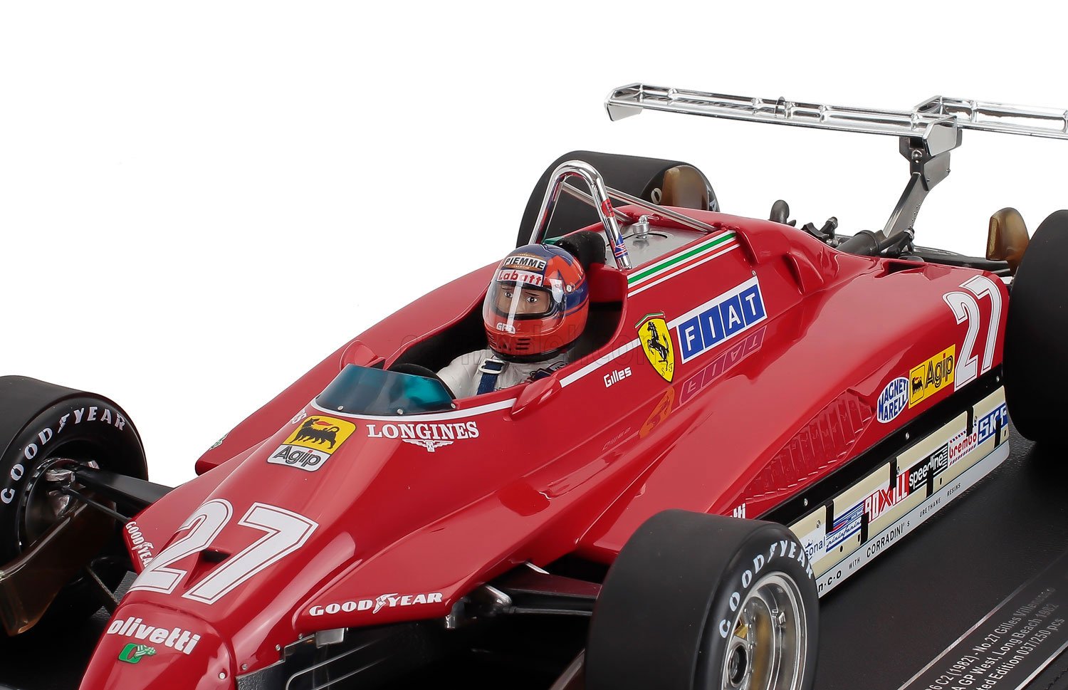 | 1/12 GP-REPLICAS - FERRARI - F1 126C2 N 27 LONG BEACH USA OVEST GP (with pilot figure) 1982 GILLES VILLENEUVE - TWIN REAR SPOILER |