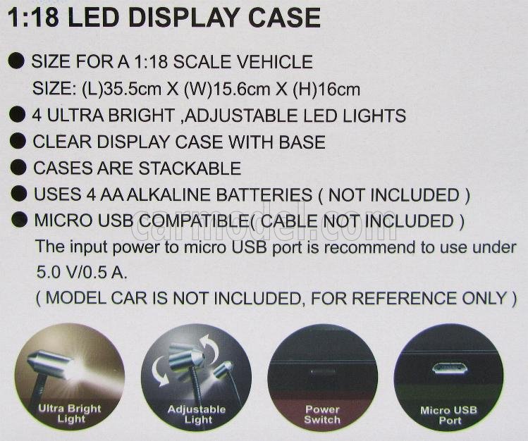| 1/18 TRIPLE9 - VETRINA DISPLAY BOX - Lungh.LENGHT cm 35.5 X Largh.WIDTH cm 15.7 X Alt.HEIGHT cm 15.8 (altezza interna cm 13.5) - LUCI FUNZIONANTI LED |