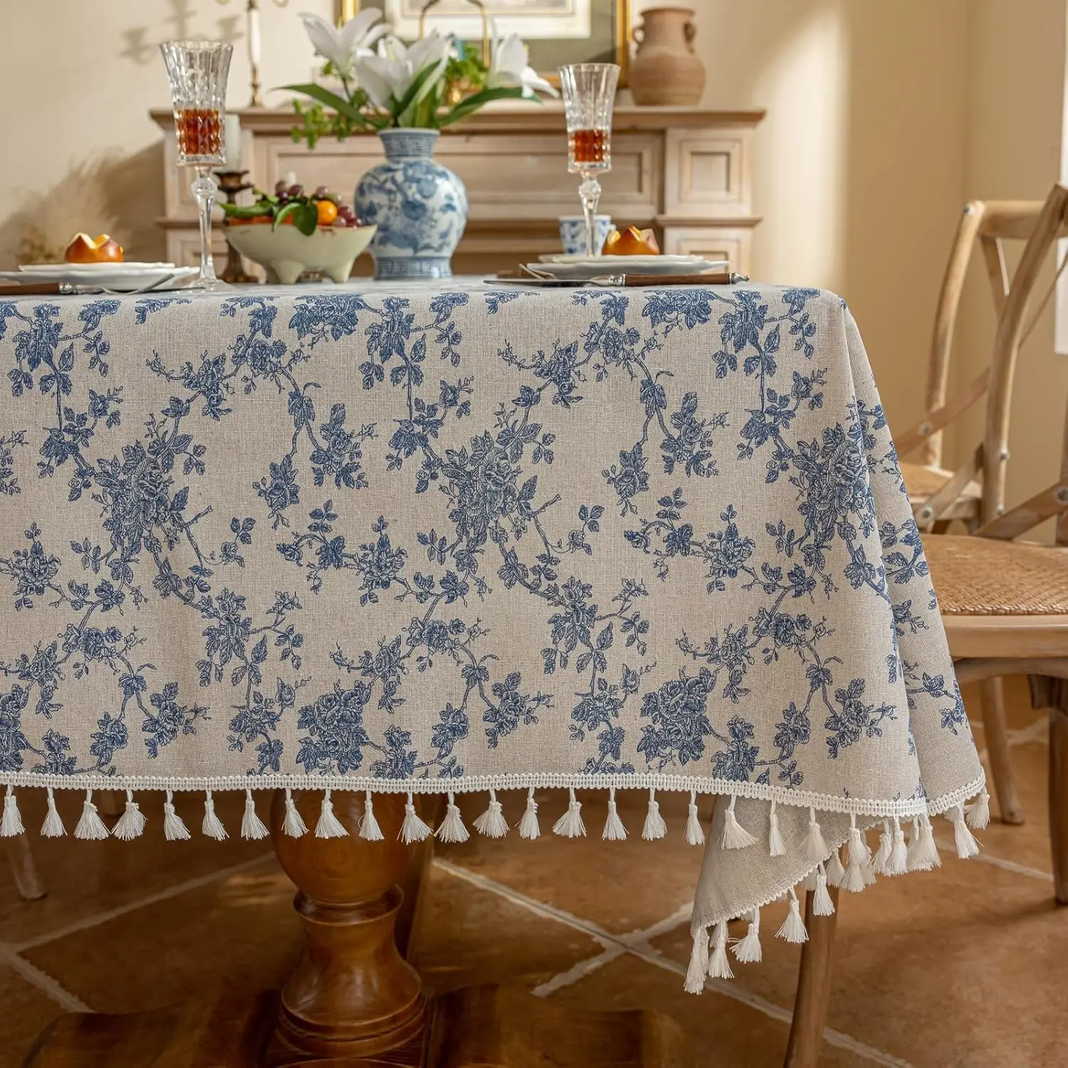 Premium Quality Fabric: Crafted from high-quality blend of cotton linen, this tablecloth combines the softness of cotton with the durability of linen. Its wrinkle-resistant and shrink-proof properties ensure long-lasting performance
