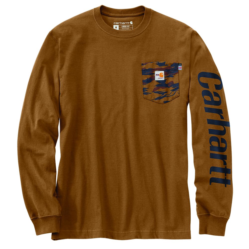 Carhartt Men's Flame Resistant Force Loose Fit Lightweight Camo Graphic T-Shirt, Oiled Walnut Heather, Medium
