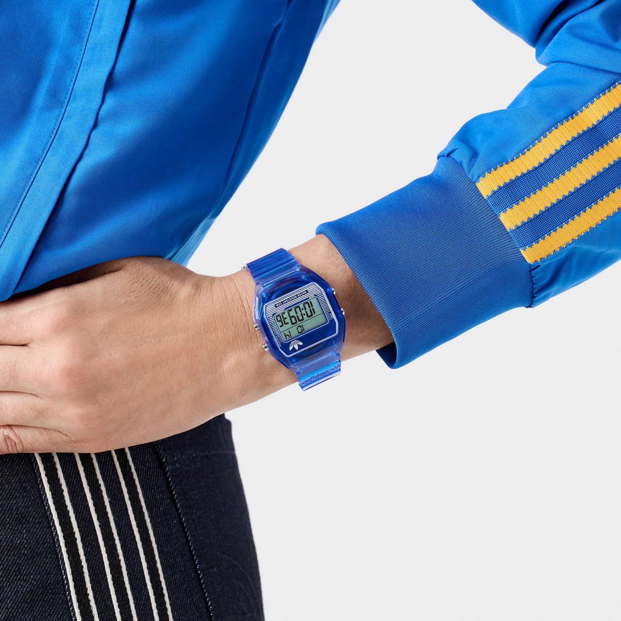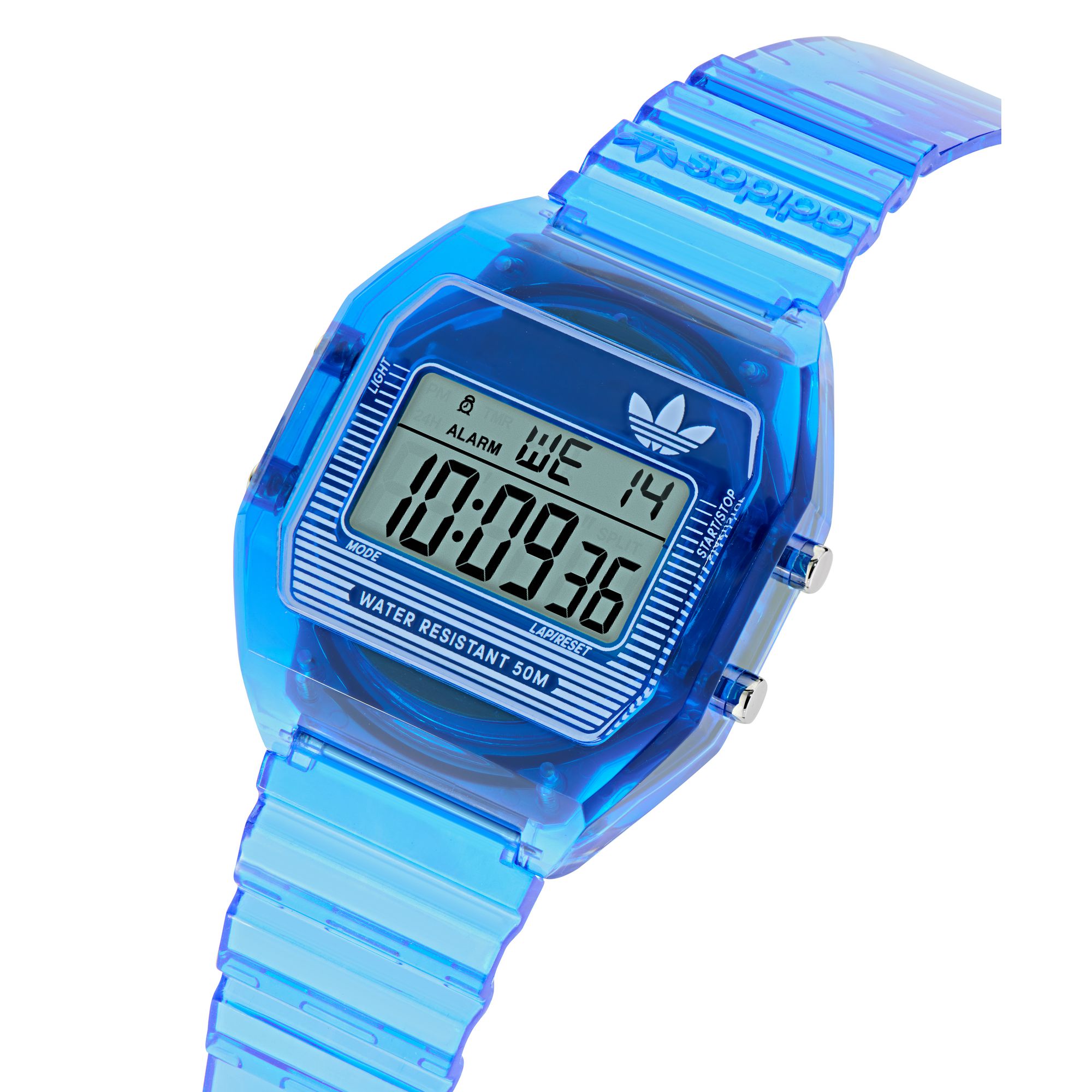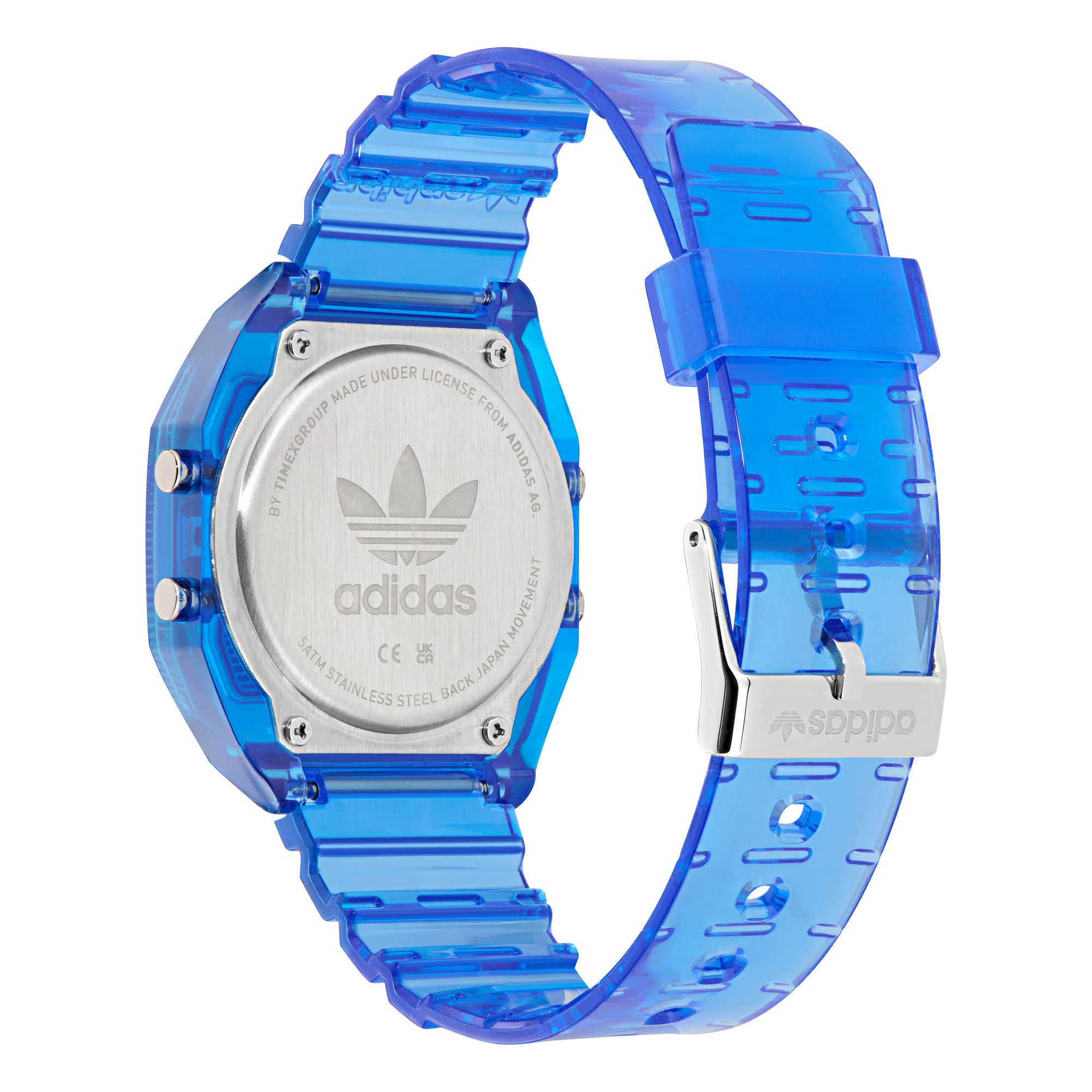 | Bracelet: | Blue silicone strap, pin buckle Width: approx. 18mm Length of the clock: approx. 22cm |