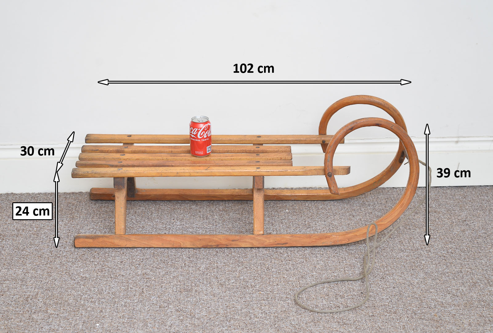 The sledge is in generally good solid condition with some age related imperfections. The sledge could be used for its intended purpose zooming down a snow covered hill, or a fantastic homely or shop display