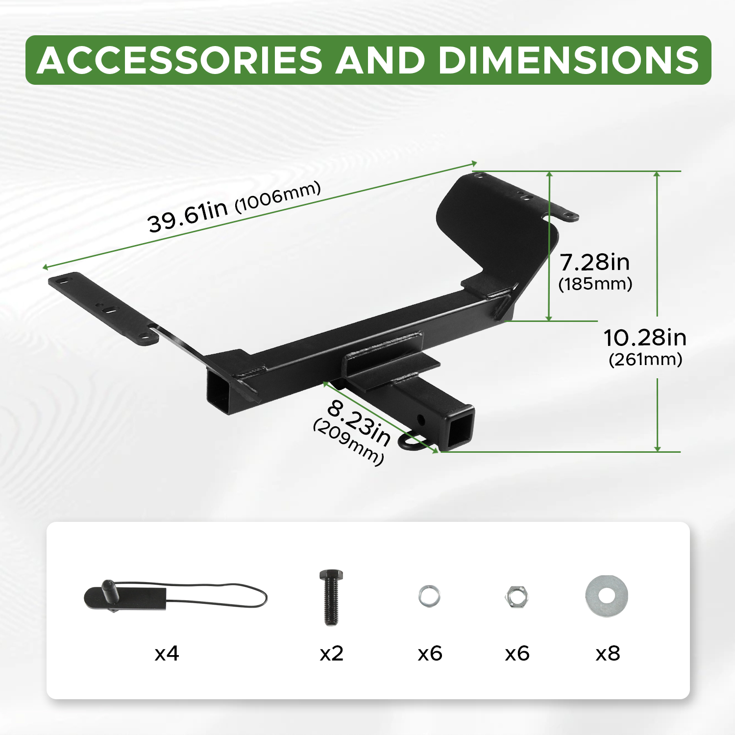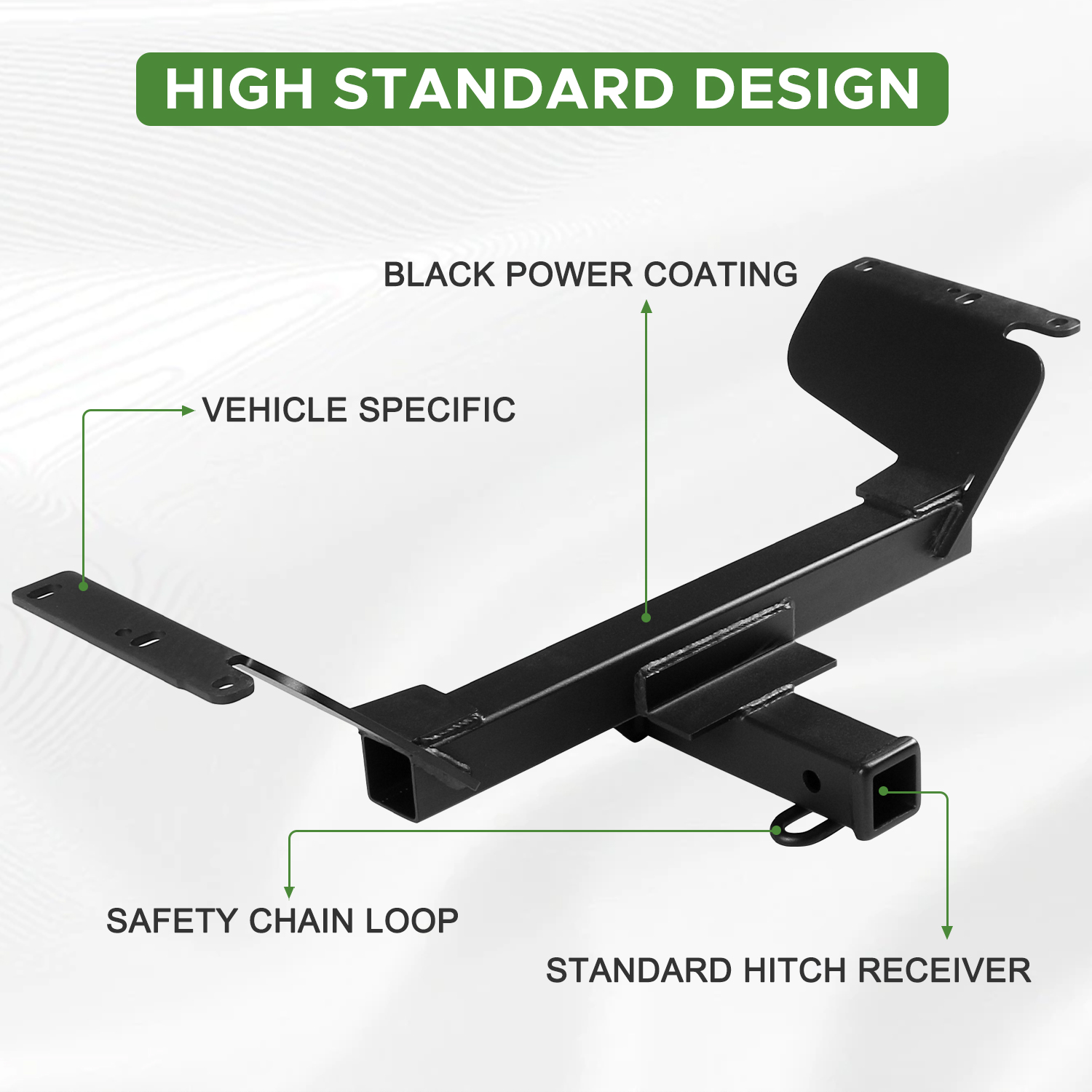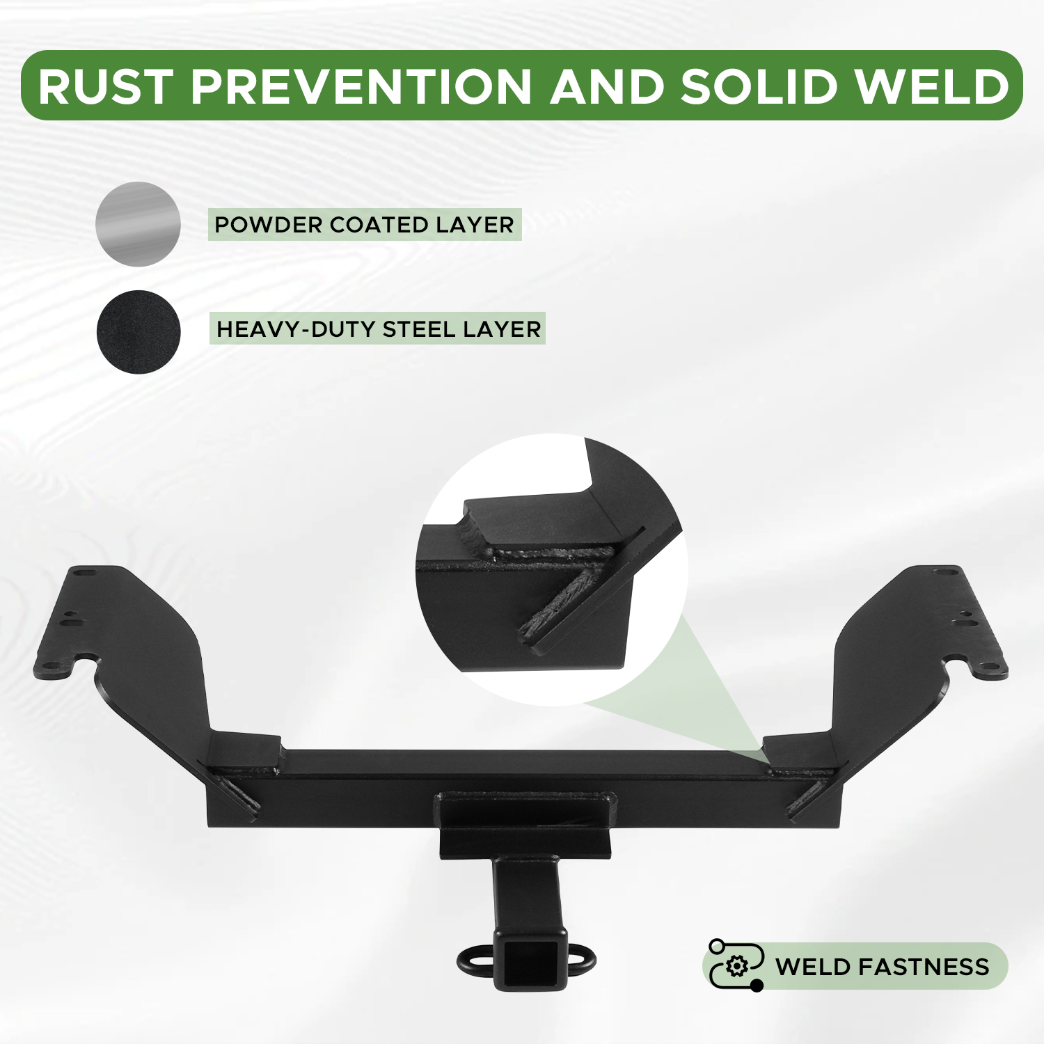 This tow hitch is protected with a unique dual-coat finish of rust-resistant liquid