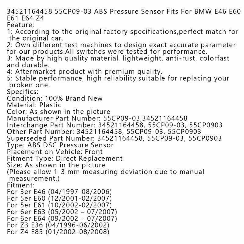 34521164458 55CP09-03 ABS Pressure Sensor Fits For BMW E46 E60 E61 E64 Z4