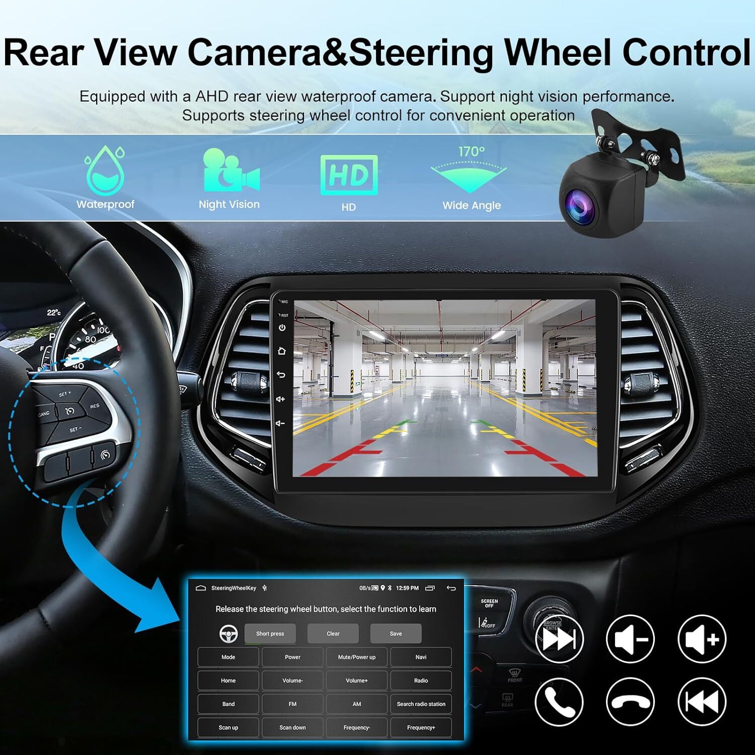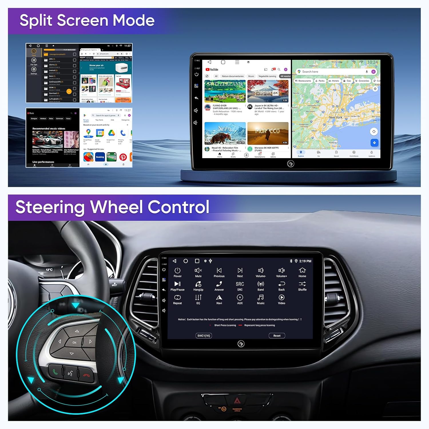 ●Steering wheel control: Through it you can control the functions you need by steering wheel, more convenient