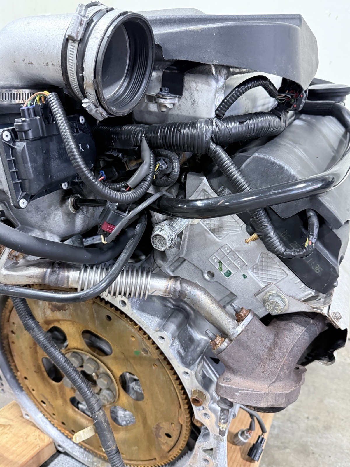 Engine starts right up, not smoking, revs sharp, engine does sound like it has a very minor misfire when holding the RPM’s around 1k. Vehicle was missing both cats as well as both legt and right maf sensors were exposed from the accident, which could have been causing the light misfire but NOT guaranteed!!! As shows in photos one cylinder coil is missing a bolt. Please see video to hear the engine run. Motor will be sold as is.