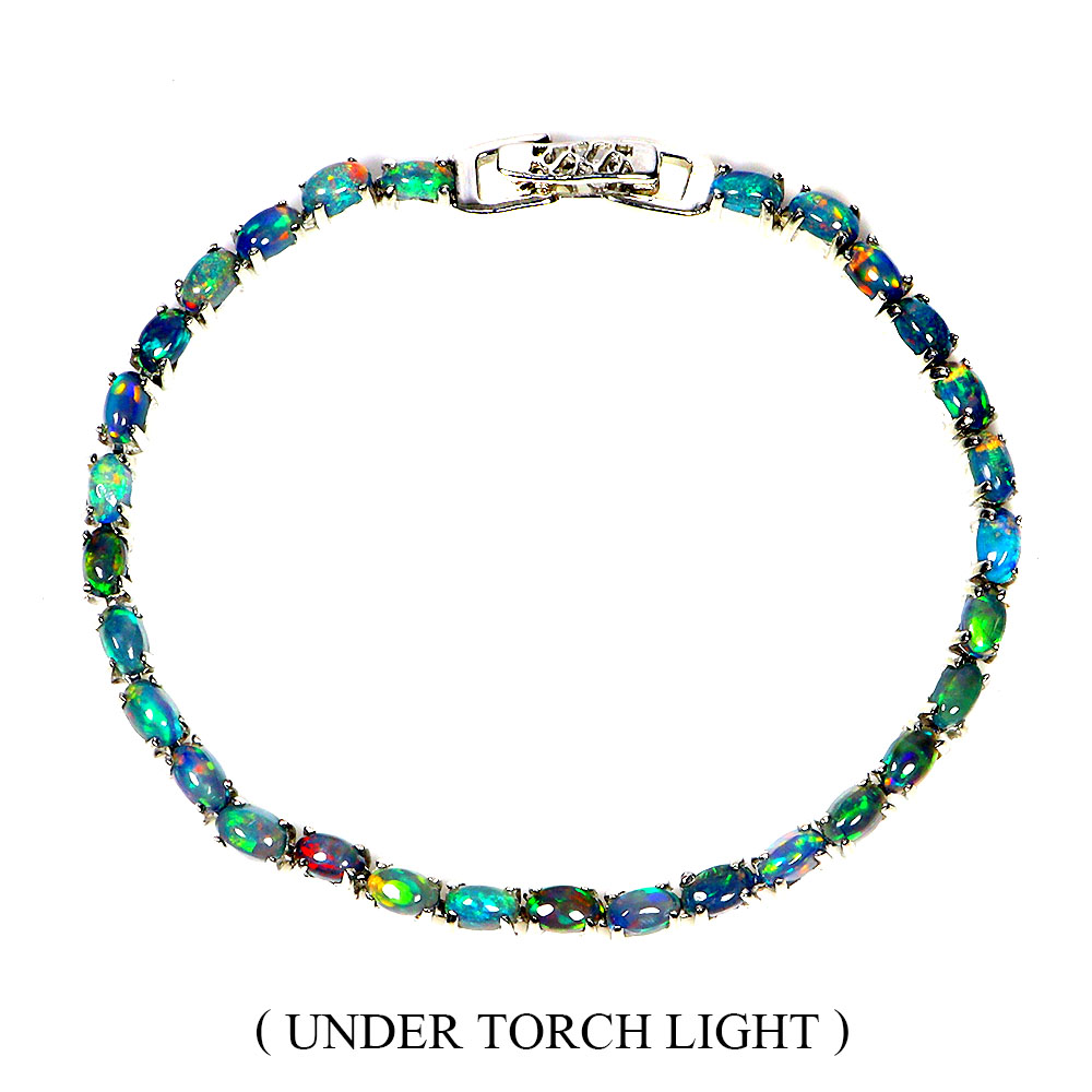 925 Sterling Silver Bracelet Oval Black Opal 5x3mm Natural Gemstone Jewelry 7in