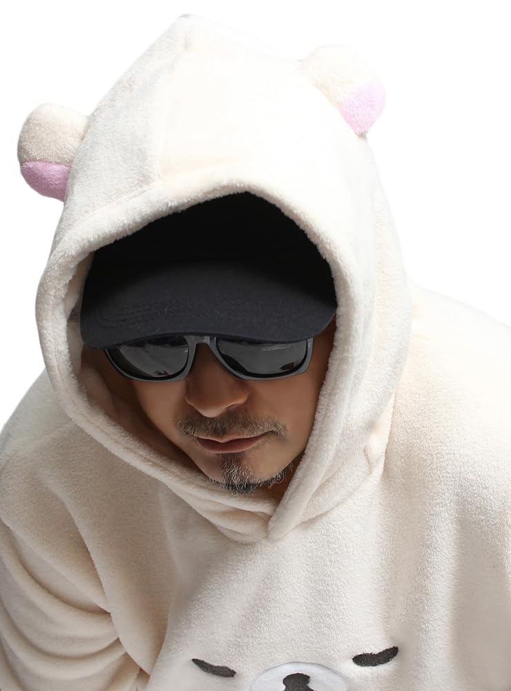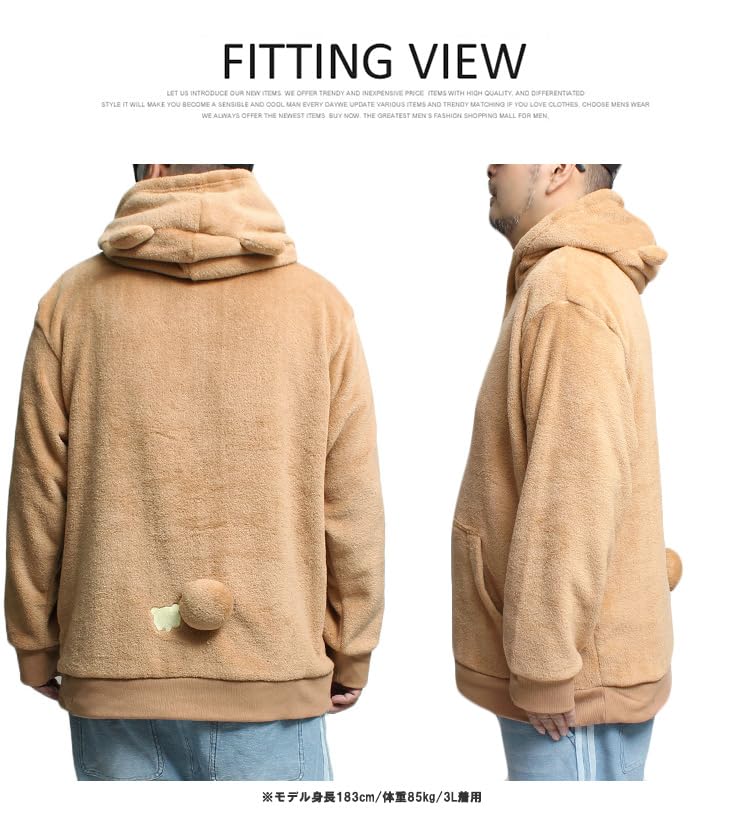 One Colors Rilakkuma Men'S Plus Size Pullover Hoodie With Boa Fleece, Size 4L, _