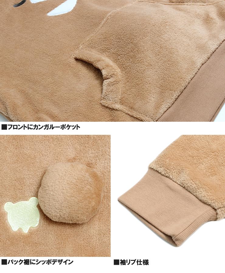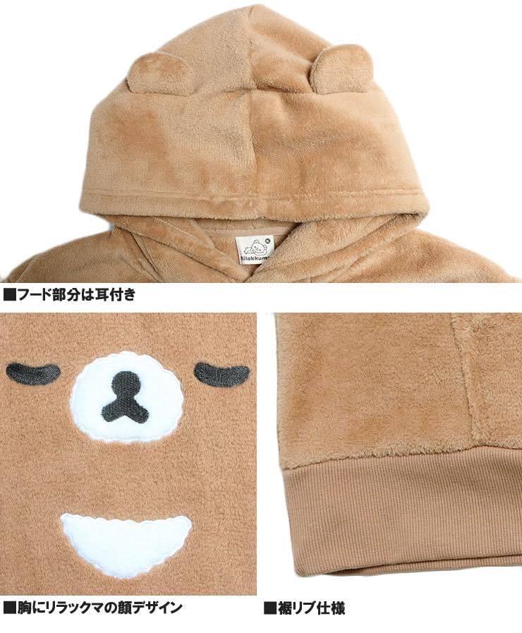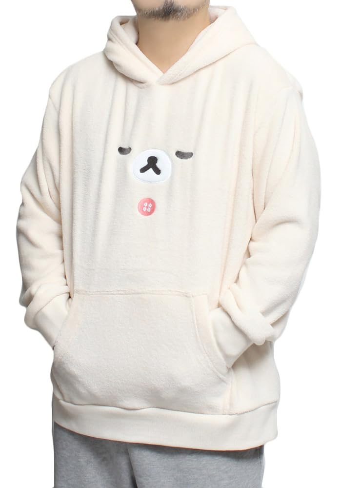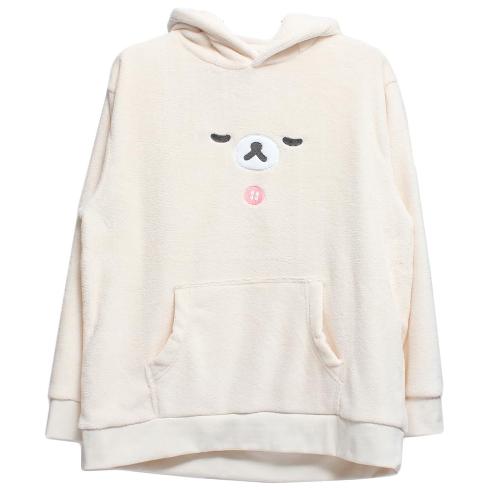 4L Size: Length 81cm, Width 66cm, Shoulder Width 61cm, Sleeve Length 63cm This plus-size hoodie featuring the adorable Rilakkuma motif combines comfort with a cute design. The off-white body features Rilakkuma's distinctive facial expression, making it a truly immersive piece. The fleece material provides a soft feel and warmth, making it perfect for cold weather. The pullover design makes it easy to put on and take off, and the hood adds a casual touch.
