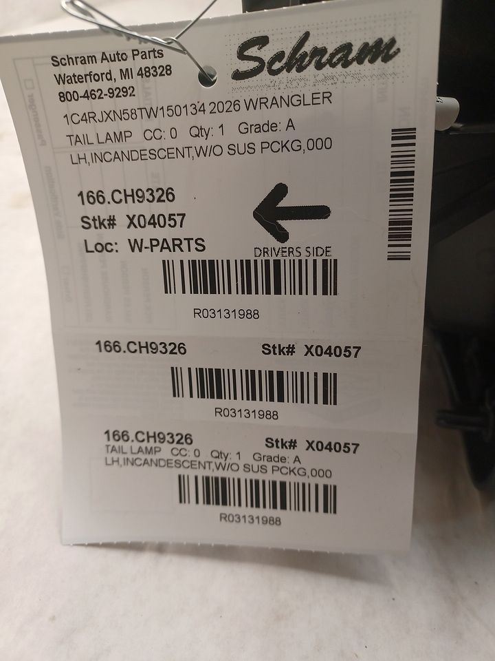 Inner or Outer, Upper or Lower. Confirm before purchase to avoid delays or returns. Genuine OEM Quality: This is a factory-original part manufactured to precise specifications for fit and performance. Units may show normal signs of use such as surface scratches or light scuffs but are thoroughly inspected to ensure lens integrity and proper function. See listing notes for grading and cosmetic condition. Fitment Confidence: Use part numbers, images, and interchange information to verify this is the correct taillight for your application. Still unsure? Send us your VIN—our team can help confirm fitment. Questions? Ask for Chad. Our expert parts staff is ready to help you find the right lighting solution the first time. Call or message us—we’re here to ensure your satisfaction. Drive Safe, Stay Seen: A cracked or dim taillight isn’t just unsightly—it’s unsafe. Replace it today with a dependable OEM unit from Schram Auto and Truck Parts. Trusted since 1923 for quality and integrity in automotive recycling.