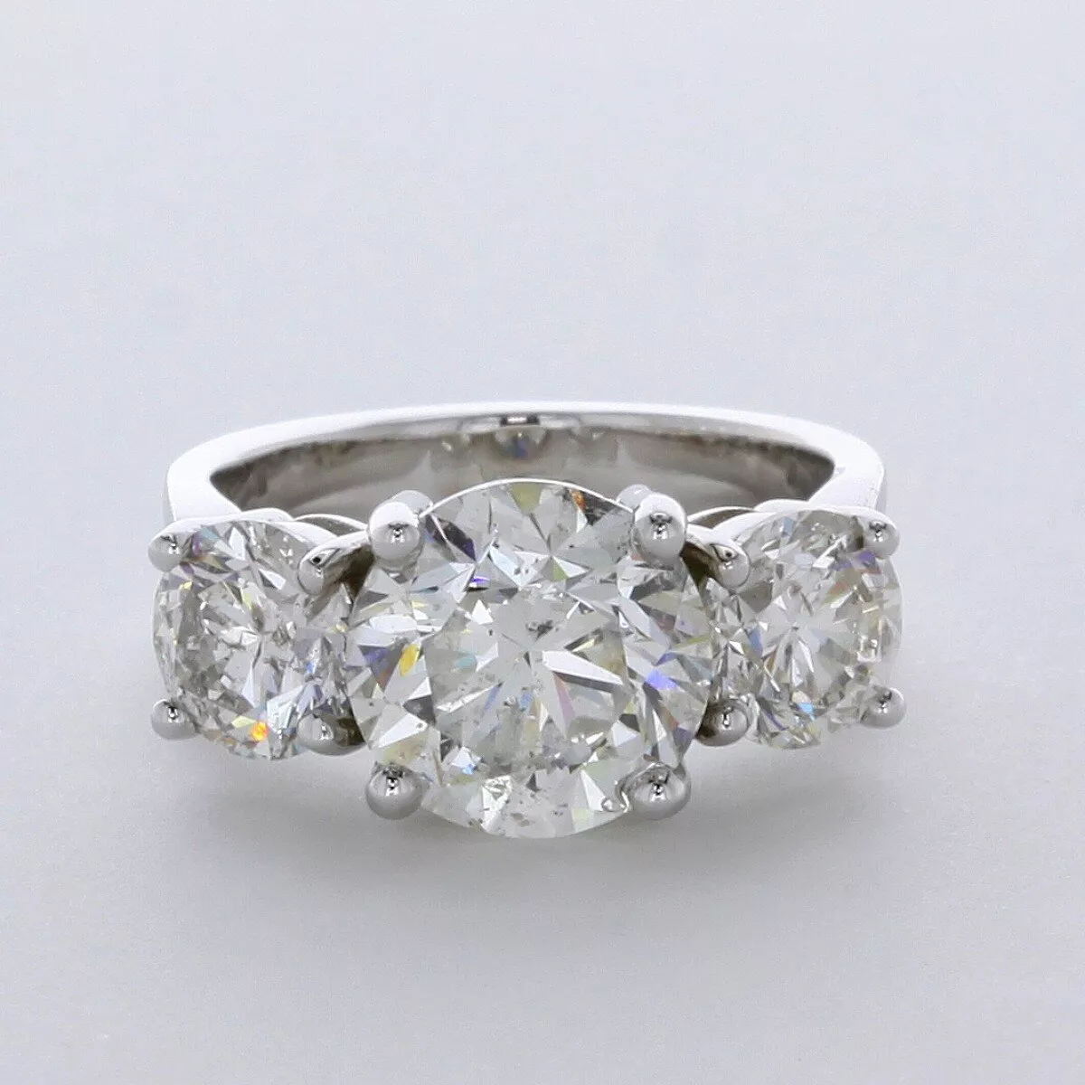 Solid 14K White Gold Three Stone Engagement Ring Classic AGI Cert 5.67 CT Round Lab-Grown Diamond G SI1