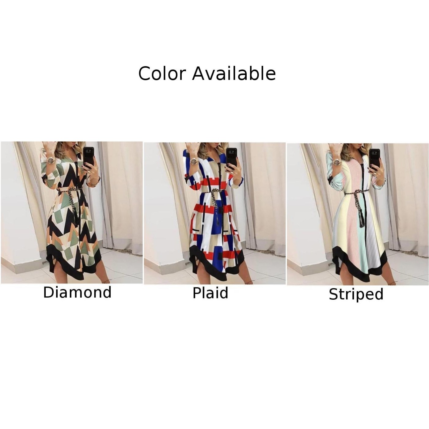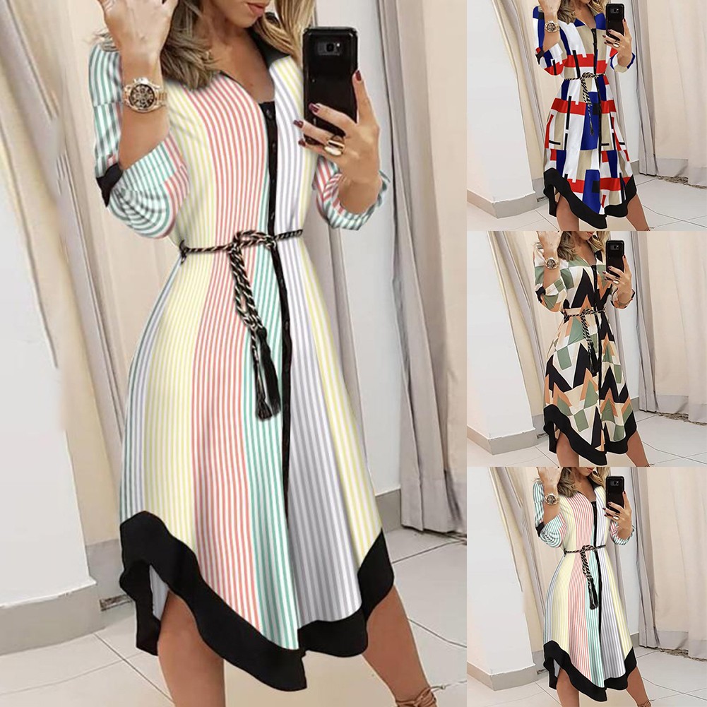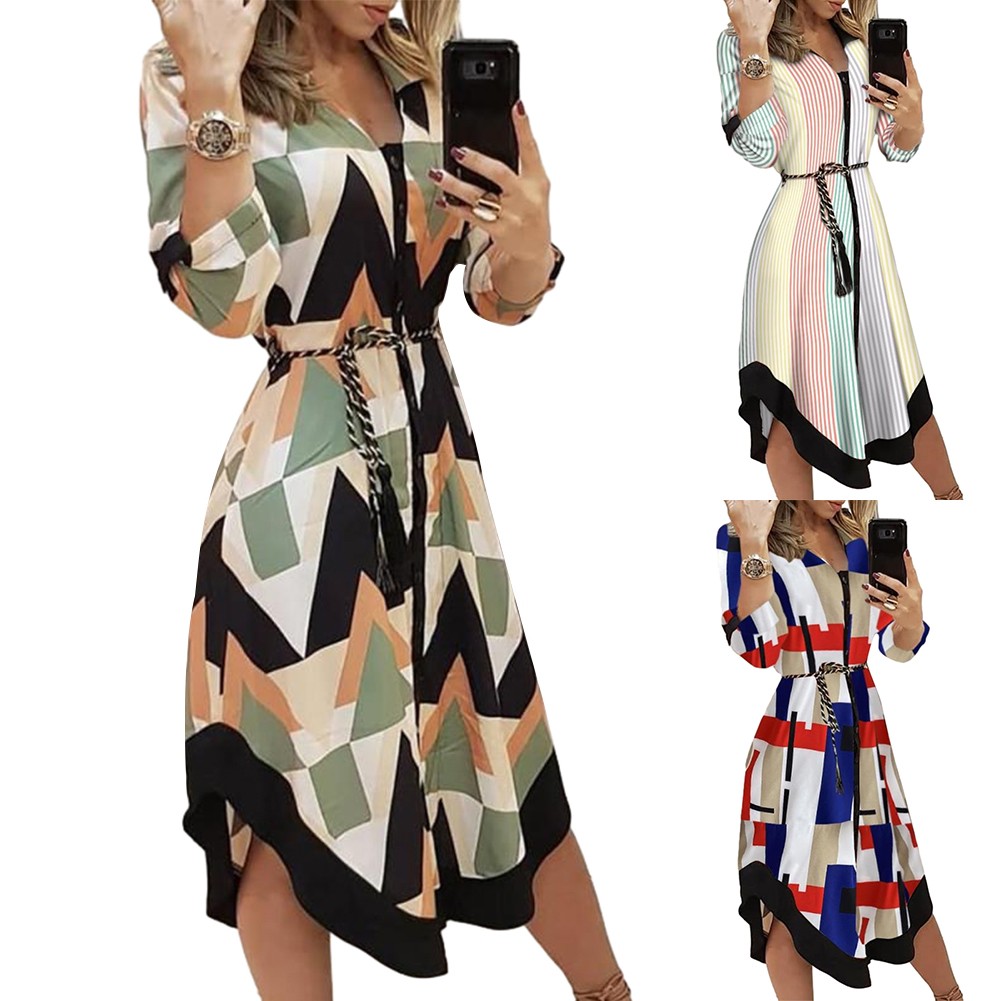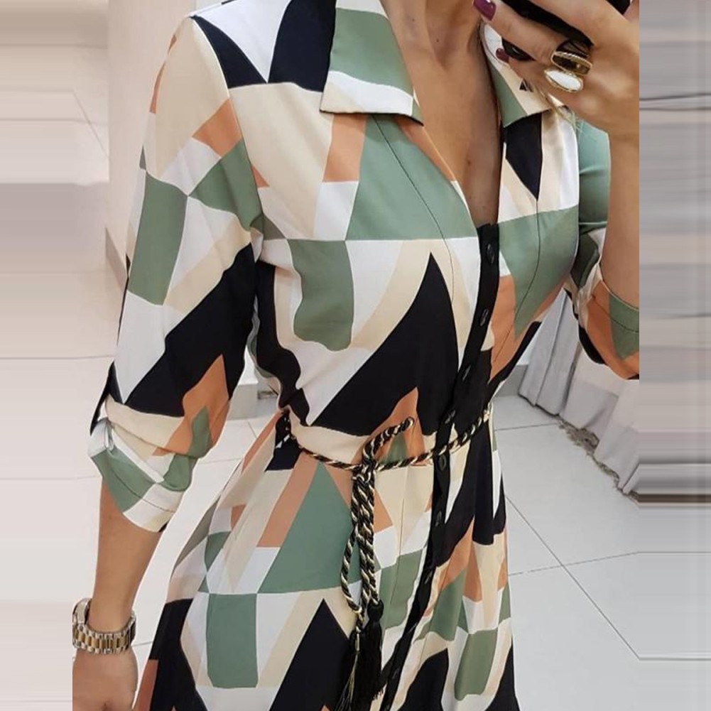 * Artikelmerkmale:WOmen, langes Kleid, Druck, 3/4-Ärmel, Knopfleiste, Schnürung, Hemdkleid, Freizeit
