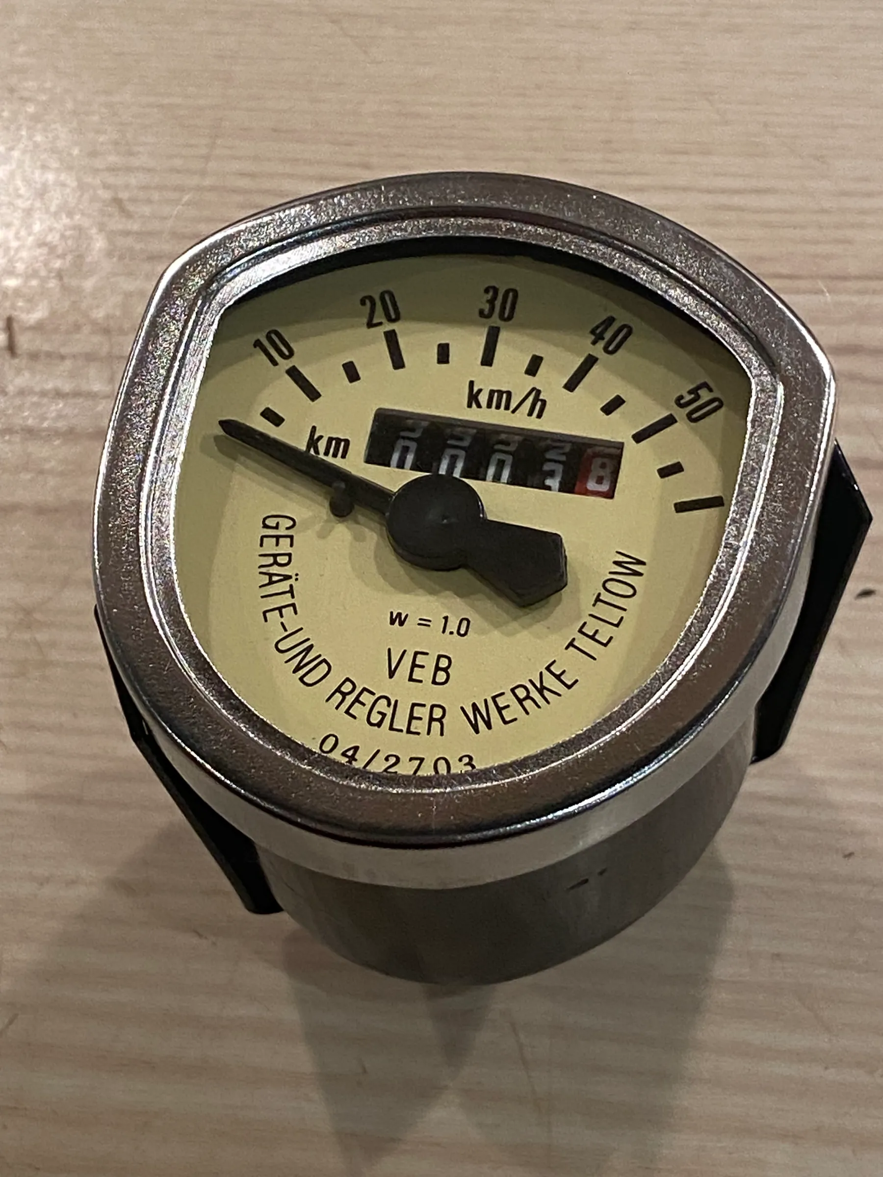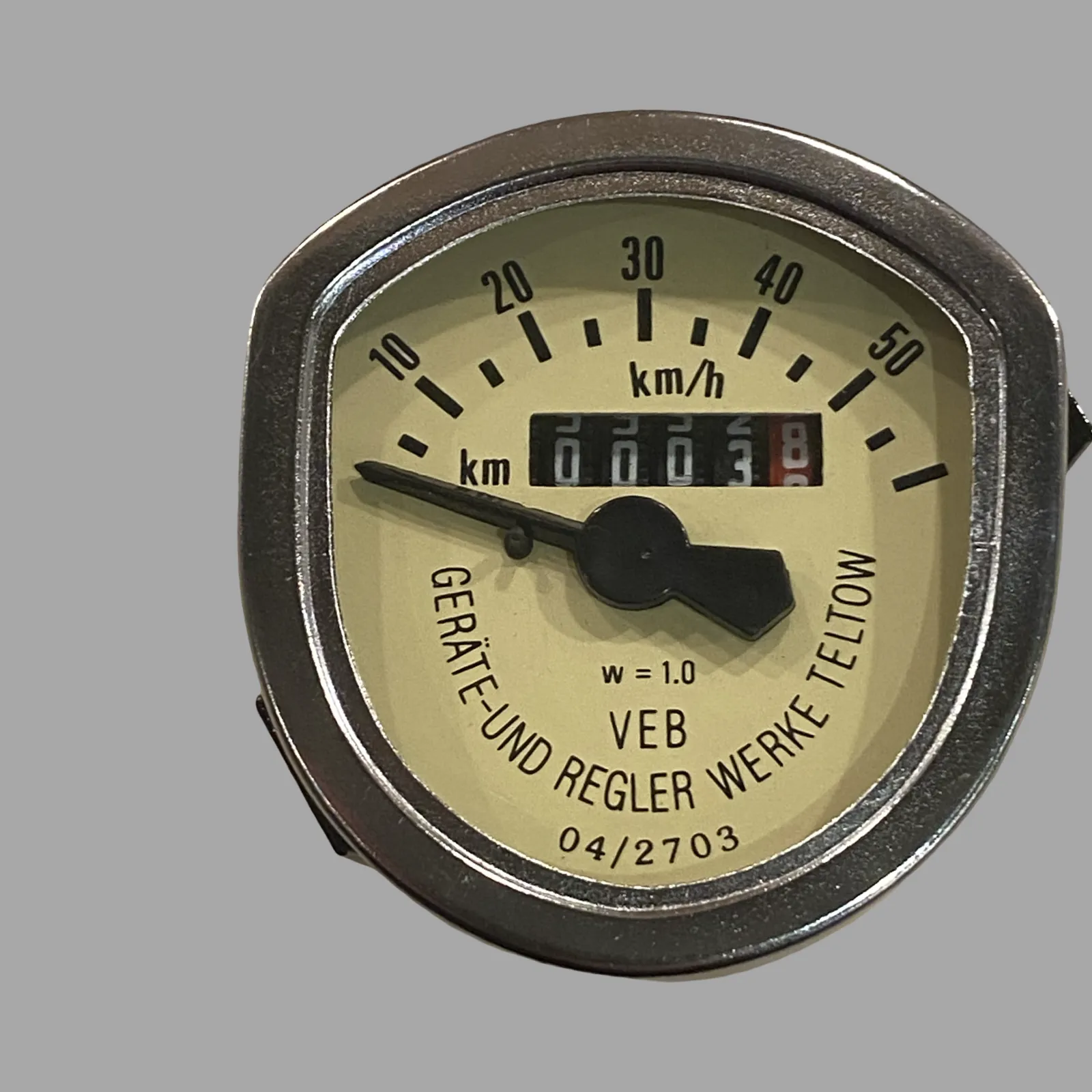 Compteur de vitesse 60 km/h, cadran d'origine VEB Geräte und Reglerwerke Teltow pour Simson SR1, SR2, SR2E, KR50 Compteur de vitesse ovale avec fenêtre d'éclairage, étrier de fixation et joint en caoutchouc. Produit de qualité fabriqué par un fabricant allemand. Cet article est un compteur de vitesse mécanique avec une plage d'affichage allant jusqu'à 60 km/h.