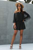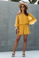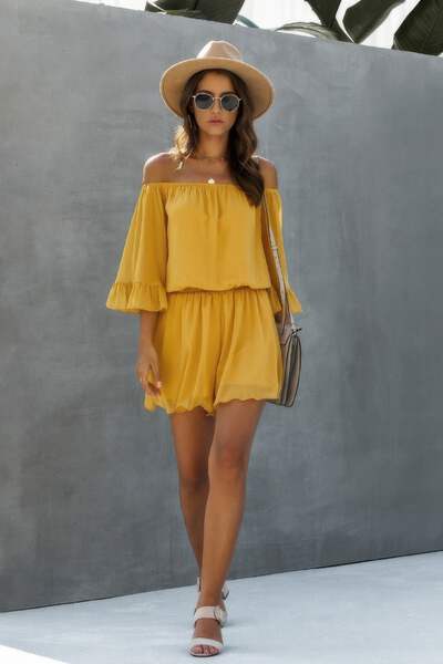This chiffon off shoulder flare sleeves loose fit romper is the ultimate blend of breezy comfort and effortless style. Crafted from 100% polyester, it features a lightweight, airy feel perfect for warm weather and relaxed outings. The off shoulder neckline and flowy flare sleeves create a feminine, boho-inspired silhouette, while the loose fit adds to the easygoing vibe. Whether you're heading to a casual party, an outdoor adventure, or a day out with friends, this romper will keep you cool, comfortable, and chic.