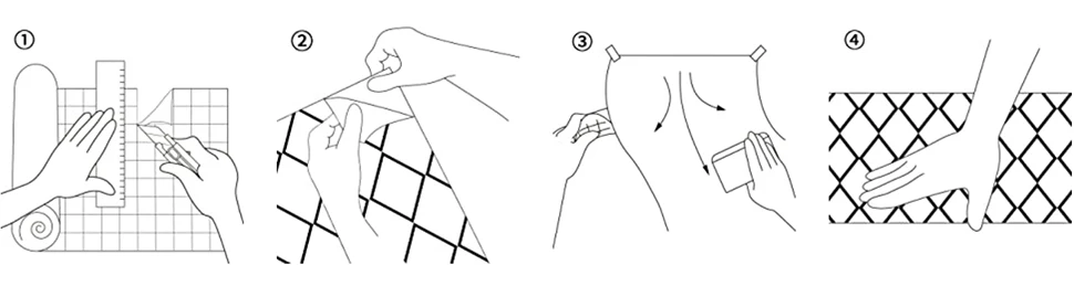 To fix the wallpaper to the surface, press this product starting from the center part towards the outside and gradually removing the remaining backing paper.