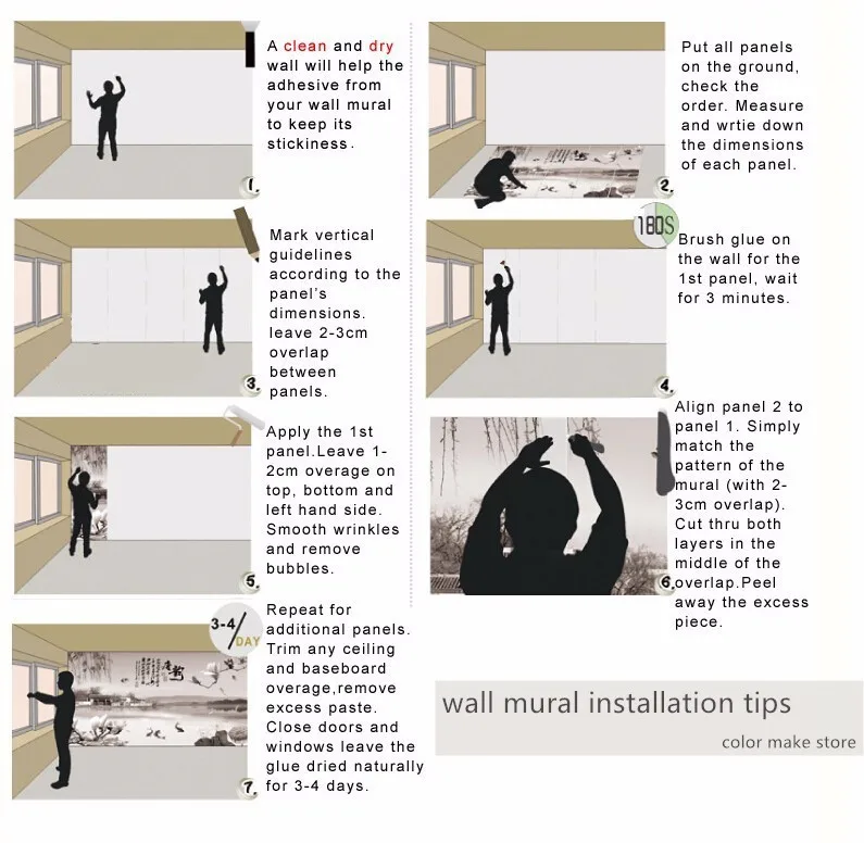 If you need 5 square meters mural wallpaper, please choose"quantity 5"here. Meanwhile mark your detail wall width & height below the order