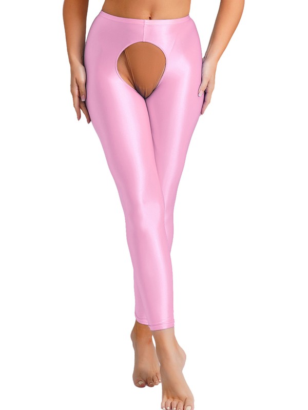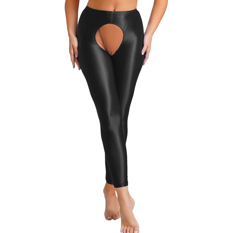 Mit ihrem hohen Bund, dem elastischen Taillenumfang, dem offenen Schritt, der einfarbigen und schmalen Passform sind die ölglänzenden Leggings ein Muss für Ihre Garderobe.