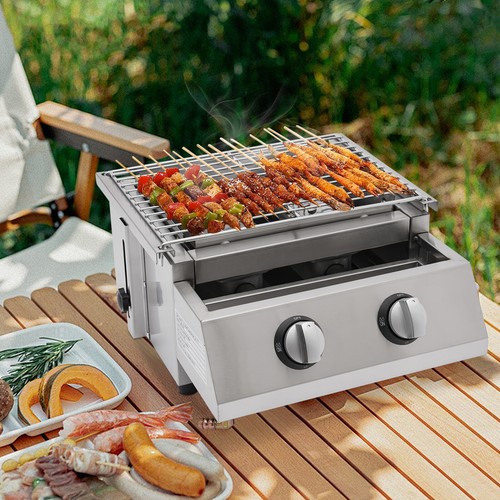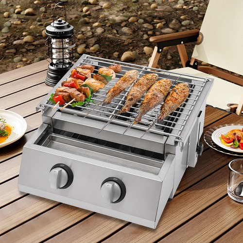 Enjoy your BBQ time with this barbeque gas grill. The high-quality stainless steel and iron make it sturdy for long-term use. It uses LPG(not included) as fuel and has an infrared ceramic burner that can grill the food in a short time, making it an excellent choice for personal, home, or commercial BBQs.