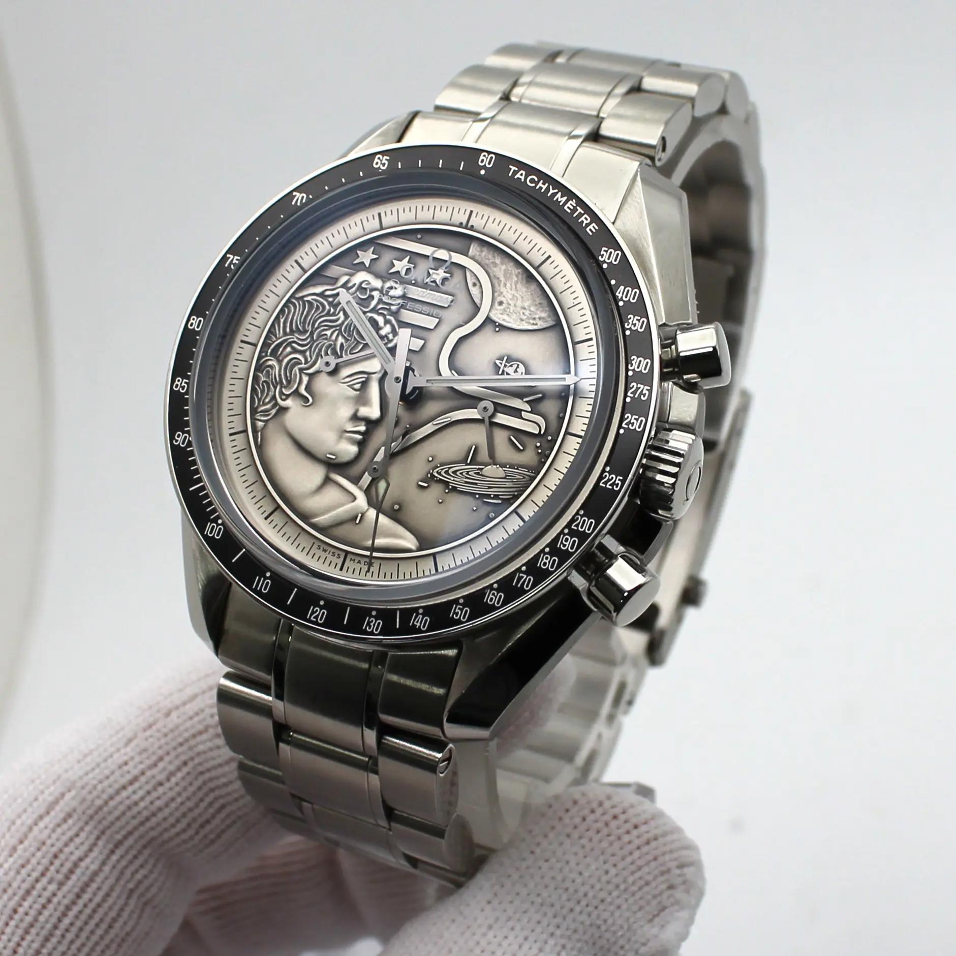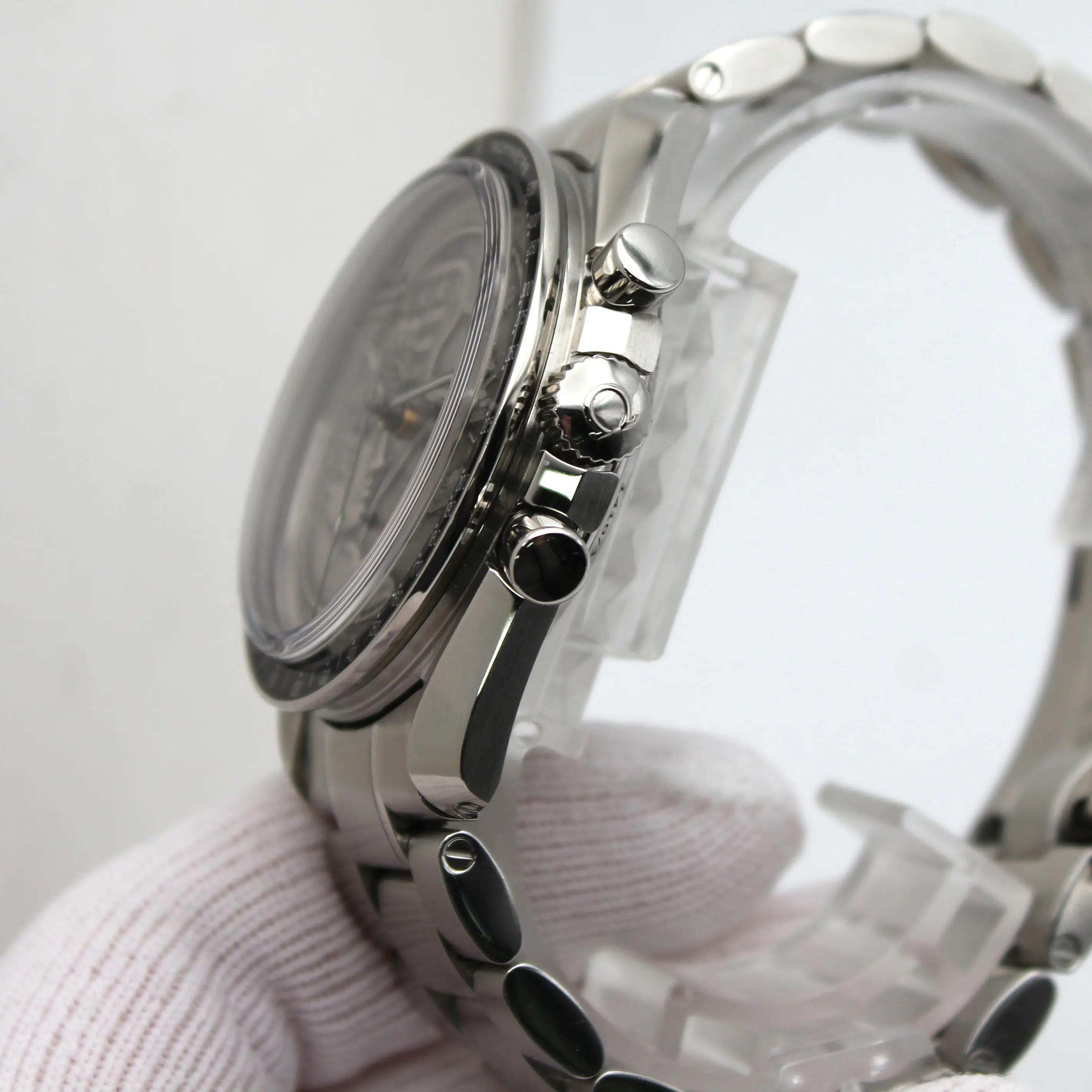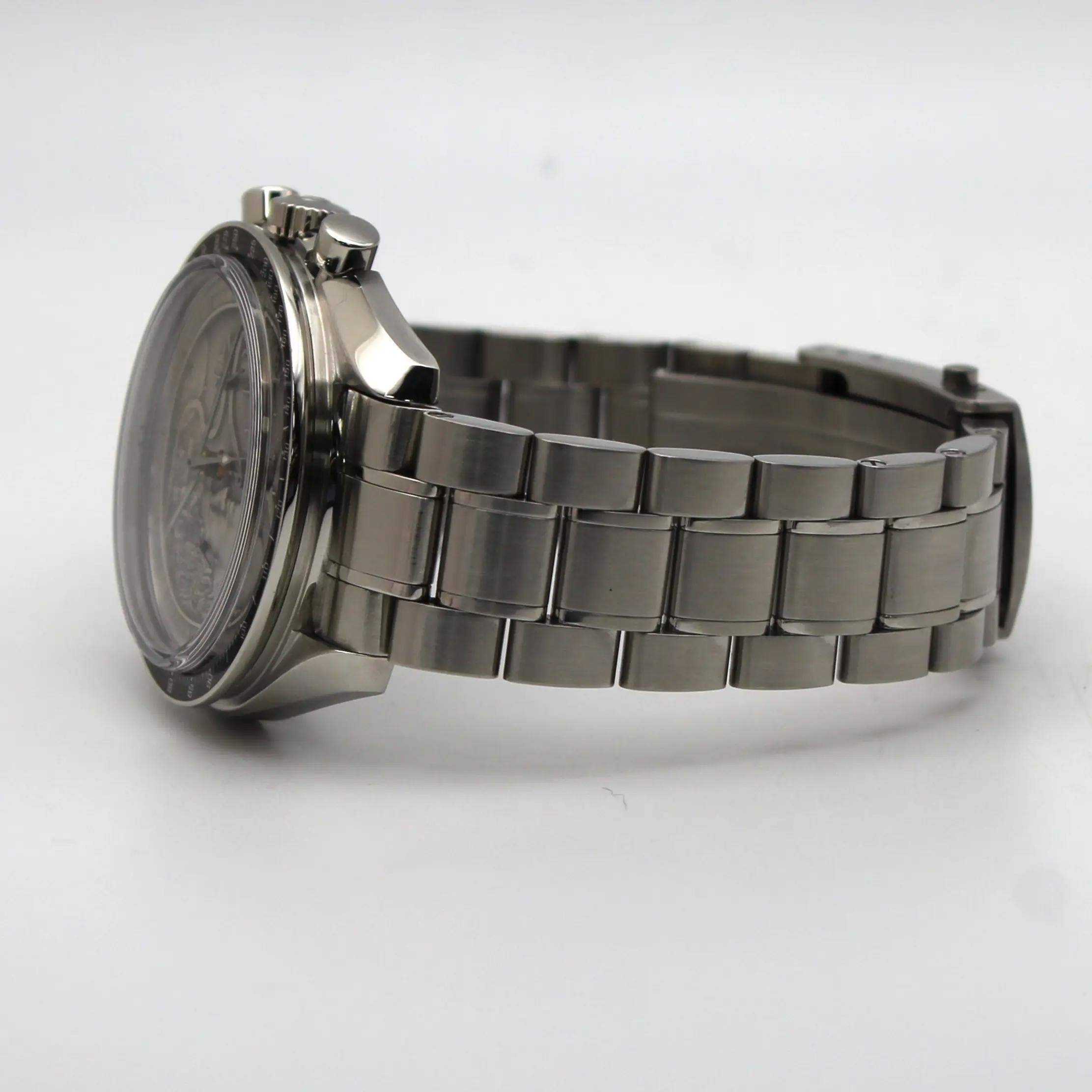 Operating a Chronograph requires using the pushers on the side of the case. The top pusher is used to start and stop the chronograph hand while the one at the bottom is used to reset it. Once the top pusher is pressed, the hand will run continuously, which you can track using the accompanying sub-dial. In order to reset the chronograph, it has to be stopped first. Otherwise the button will do nothing when pressed.
