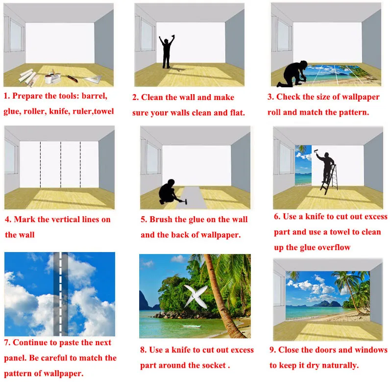 1. Mural are made up of several pieces. It will be cut into several pieces in order that it could suit for the international shipping.
