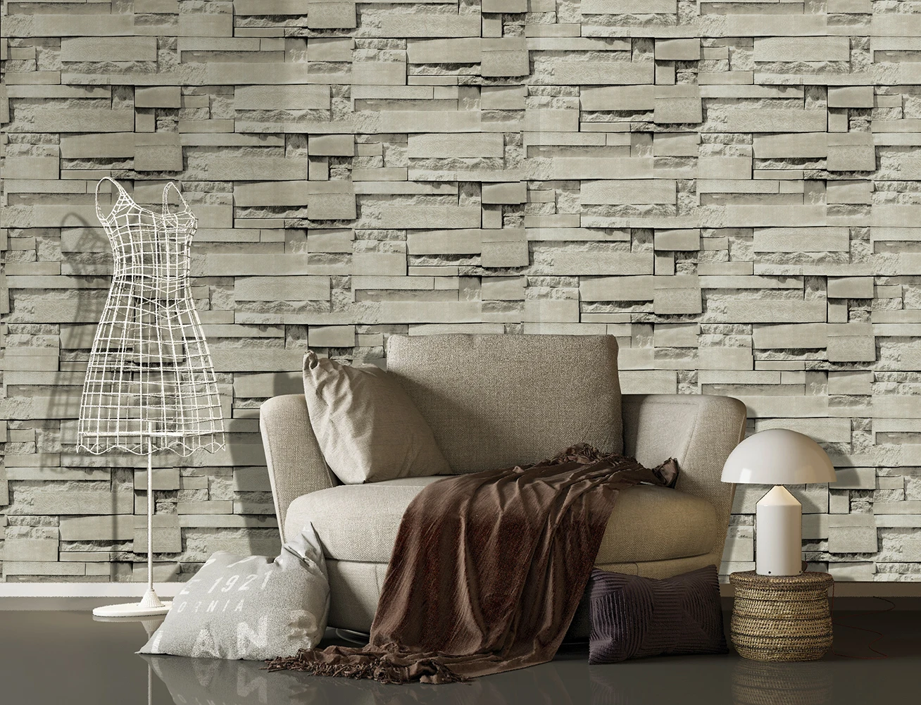 Product : Waterproof Wood fiber 3d Wallpaper Self Adhesive