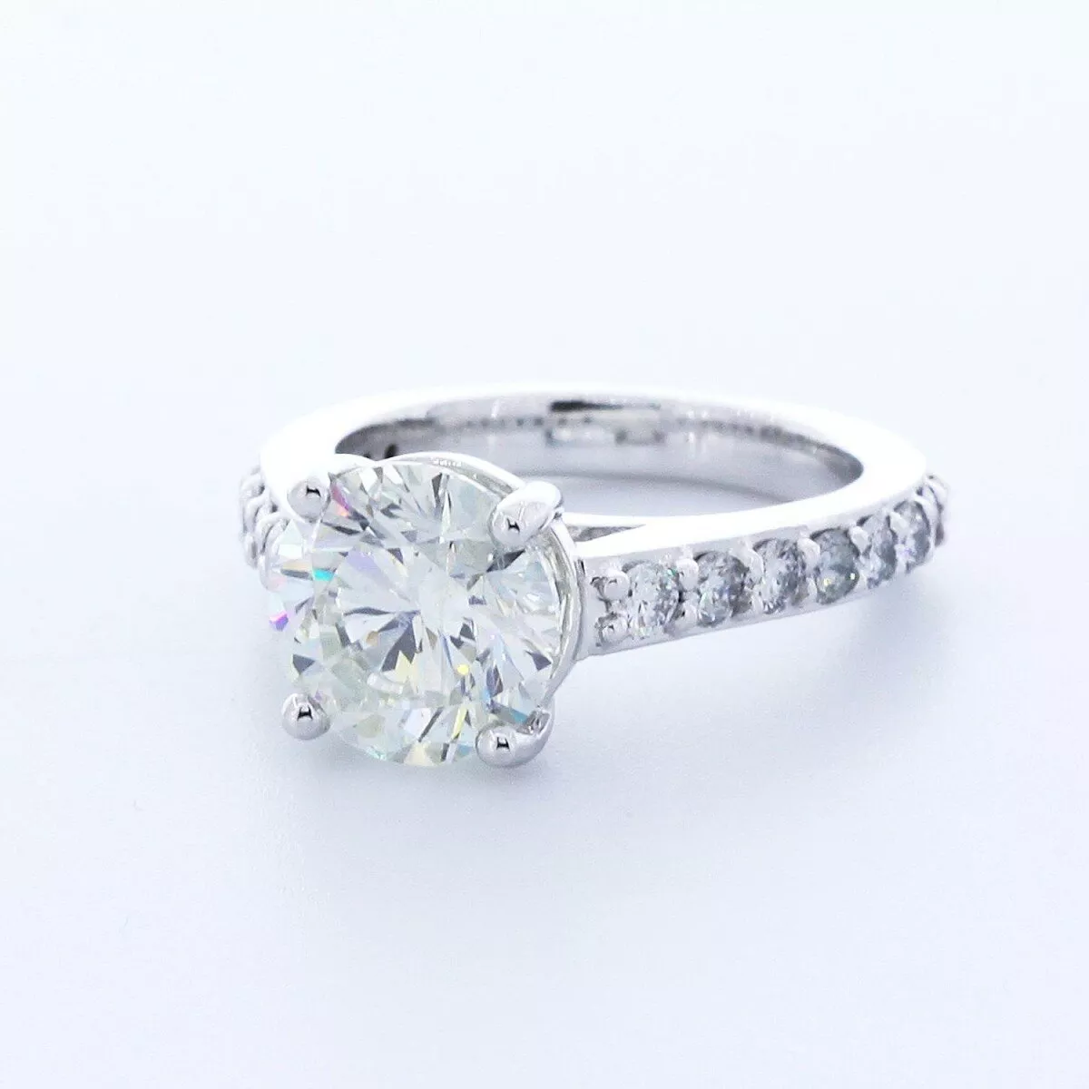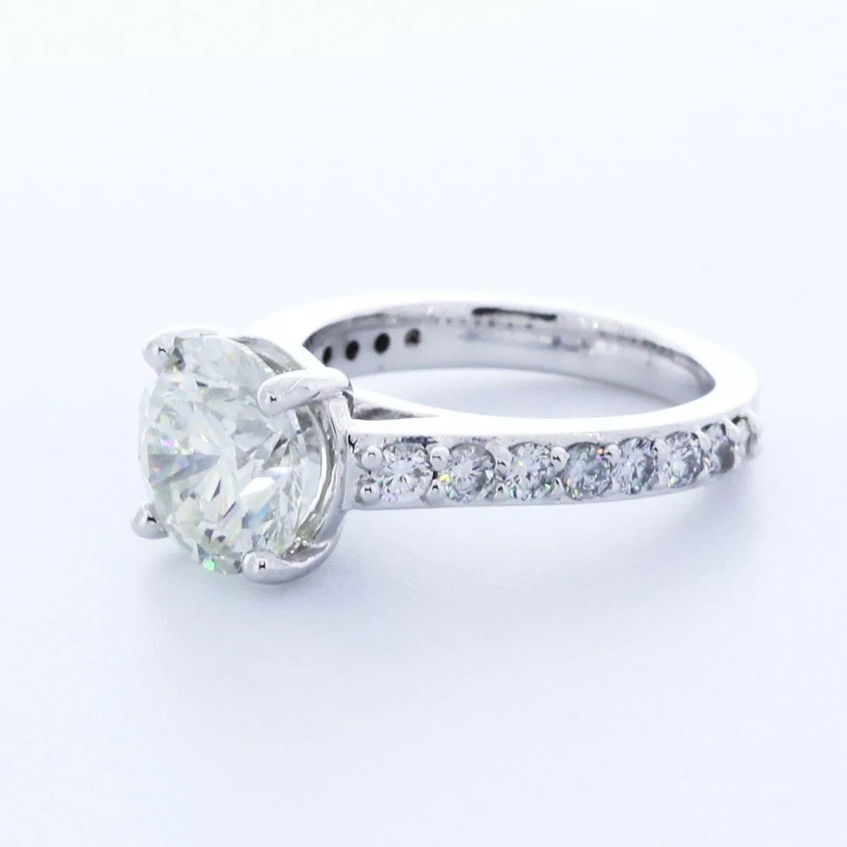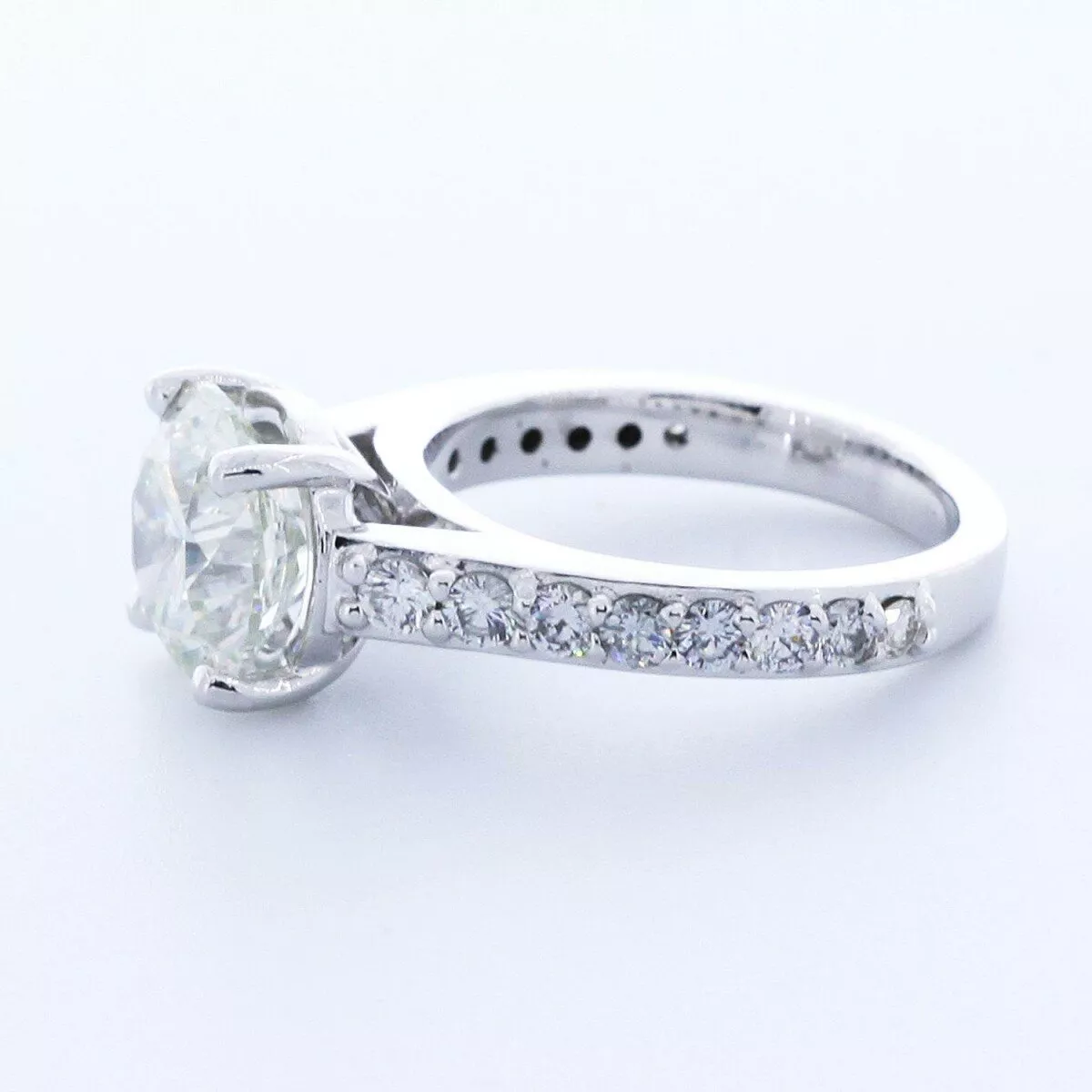 Solid 14K White Gold Side Stone Engagement Ring Classic AGI Cert 3.64 CT Round Lab-Grown Diamond H VS1