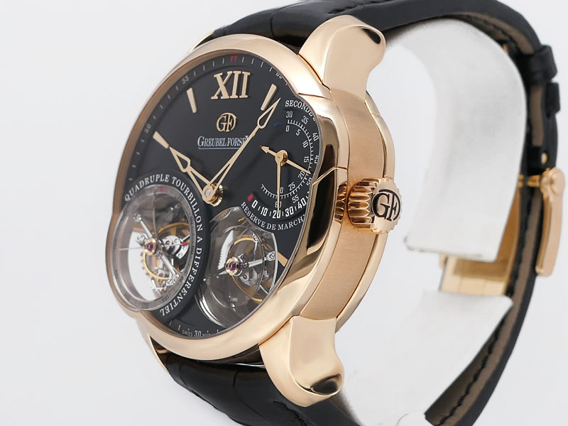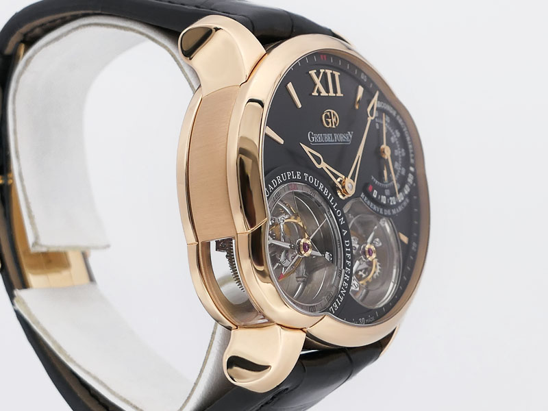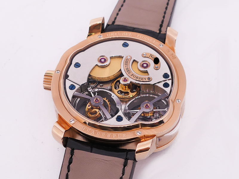 watch described is a Swiss made Greubel Forsey Quadruple Tourbillon