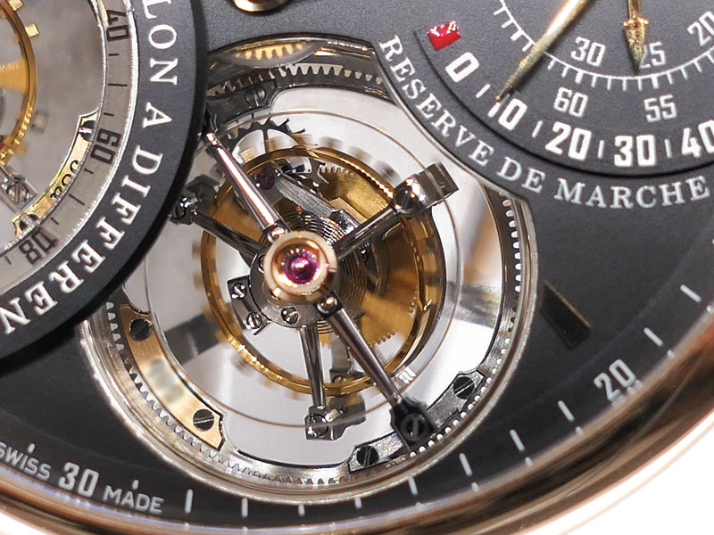 mechanism rotates within the cage of a second Tourbillon rotating ever