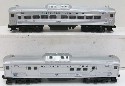 Besides the cars in the No. 2276W set, only these two other Budd cars were offered by Lionel in the Postwar era. This 2-pack includes the rare non-powered No. 2550 mail and baggage car and the No. 400 powered passenger car. These cars have the same features found on the non-powered and powered cars in the No. 2276W set, including silhouettes and interior illumination. The powered #400 Budd car is equipped with a Pullman motor, MagneTraction, electronic horn, and electronic e-unit. There is no track included with this set.