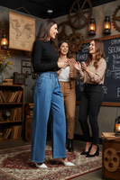 A: These are incredibly versatile - pair with fitted tops to balance the wide leg, add heels for elongation, or go casual-chic with loafers and a tucked-in blouse for effortless sophistication.