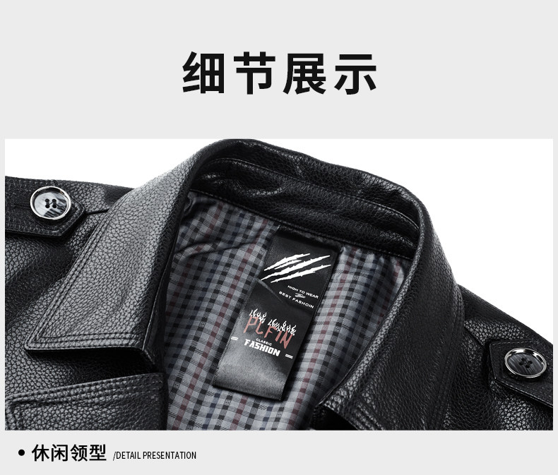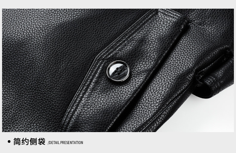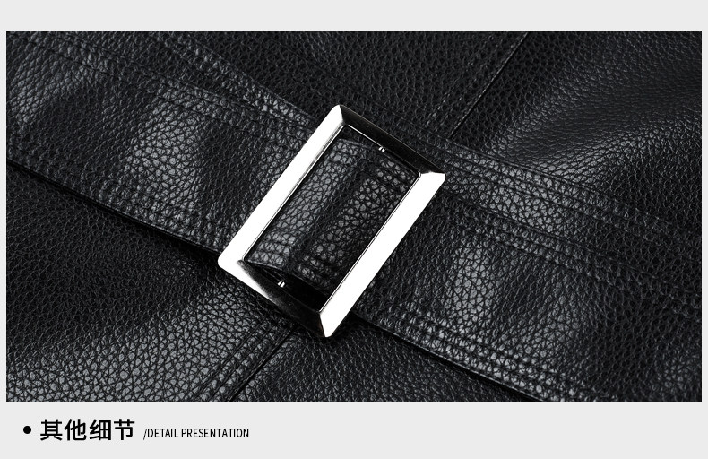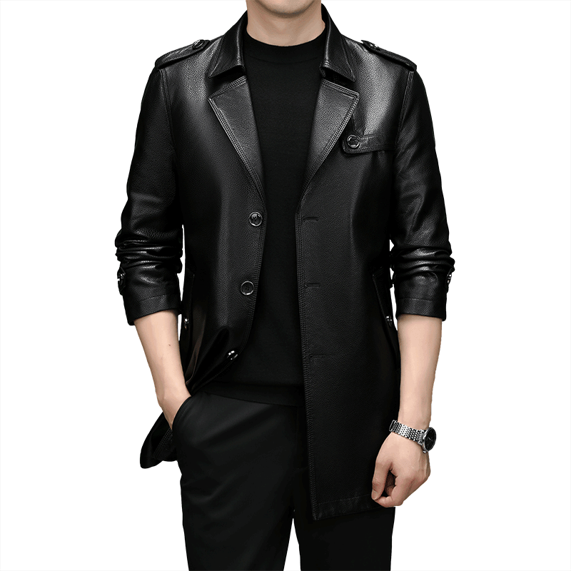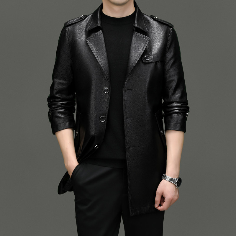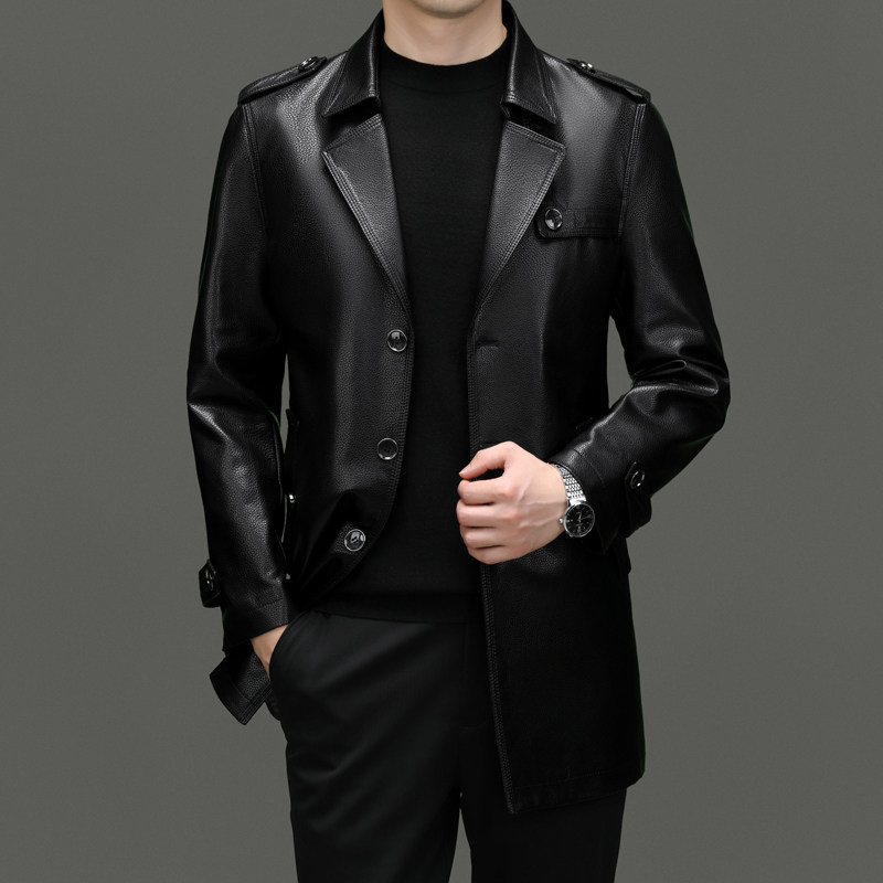 Business Casual Windbreaker Men's Leather Jacket Tops Mid-length PU Leather Coat