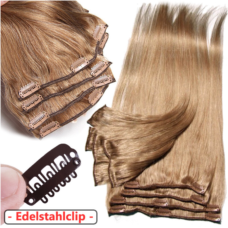 Clip In 100% Virgin Echthaar Extensions 8 Tressen/Set - Volle Kopf - DE Lokallager, Schnelle Logistik