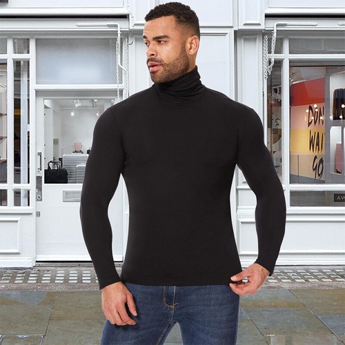 Men High-Neck Mock Turtleneck Ultra-Soft Undershirt Top Long Sleeve Pullover
