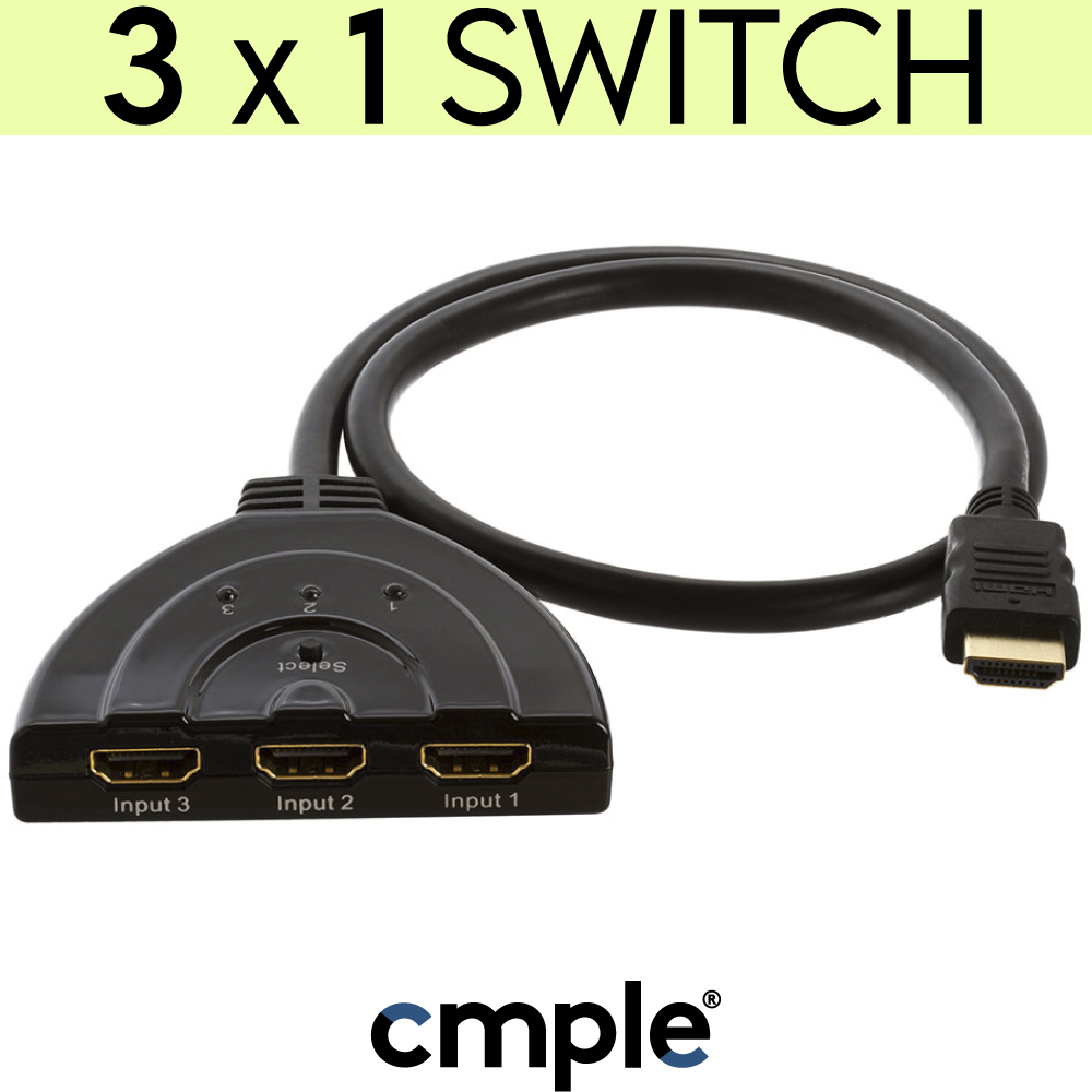 Cmple - 3 Port HDMI Pigtail Switch 2 or 3 Inputs - 1 Output