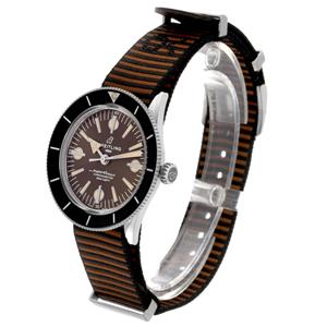 Bronze dial with luminescent sword and broad arrow-shaped hands and index hour markers. Outer stick minute markers. |
