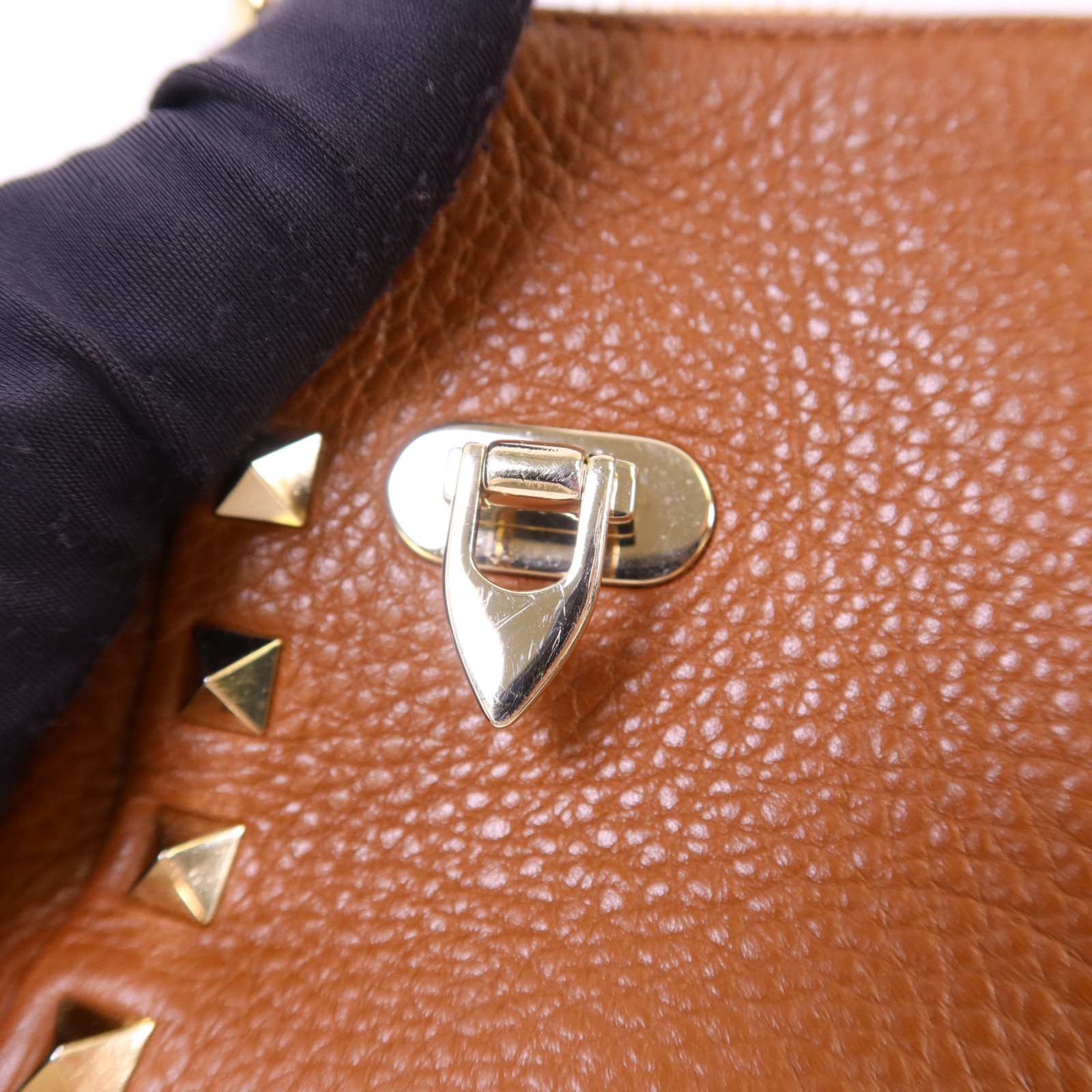 | Item Name | Valentino GHW Rockstud 2 Way Shoulder Bag Calfskin Leather Brown |