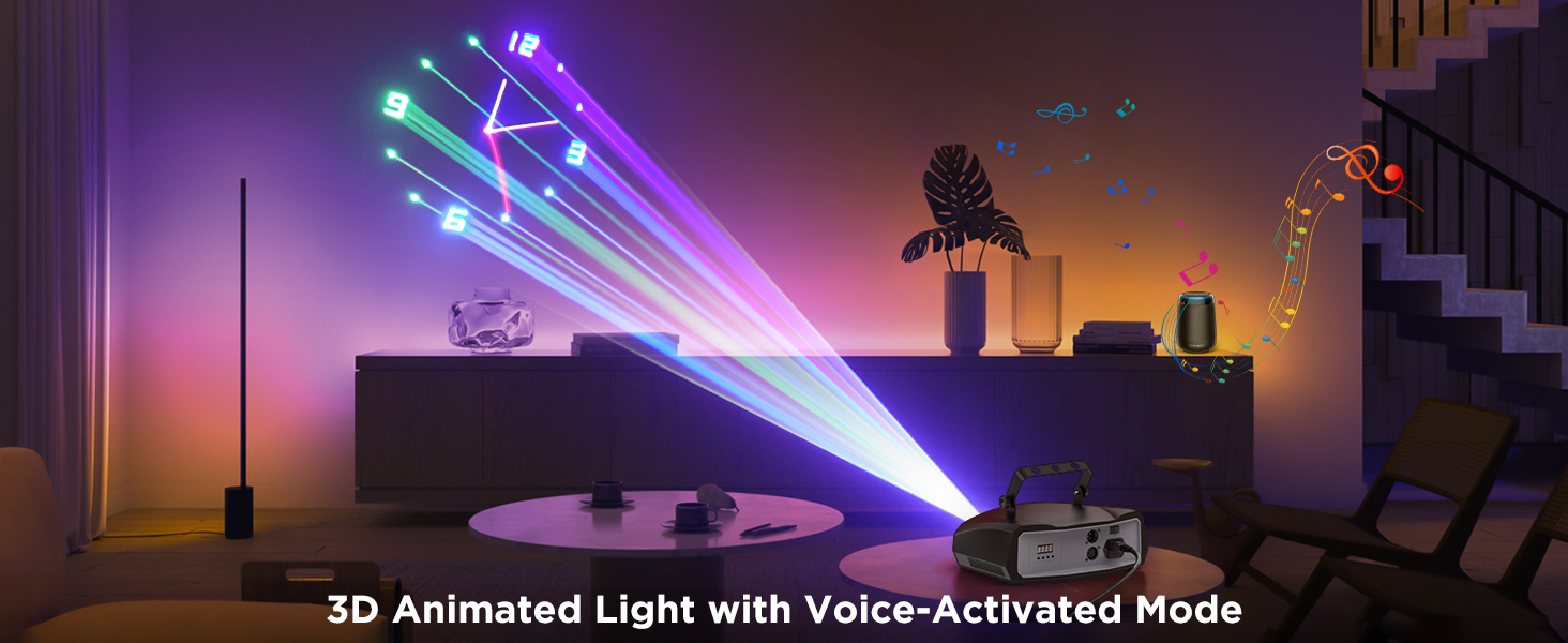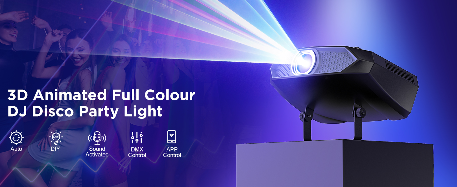 3D Animation DJ Laser Light with Bluetooth APP,RGB Party Laser Projector Light Show, Sound Activated DMX Great for Wedding Disco Bar Club Stage Lighting