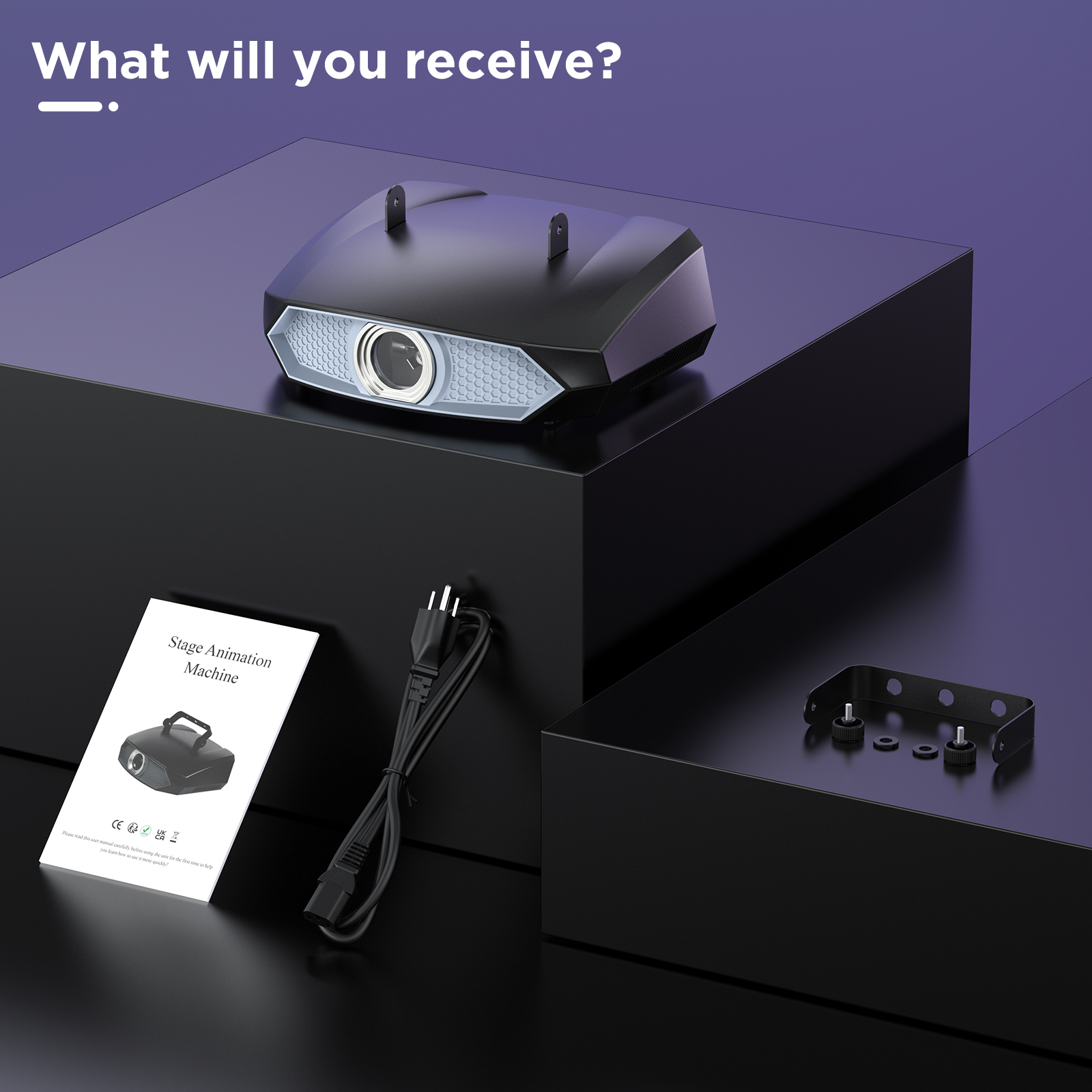 Model: ZQ03268 Colour: Black Material: Plastic Input voltage: AC110V-240V 50/60HZ Rated power: 100W Light source: 3W Full Color Laser Laser power: Red: 350MW: 635nm Green: 350MW: 520nm Blue: 1.3W: 445nm Laser color: full color Divergence angle: <1.5mrad Modulation mode: TTL modulation Beam angle: Max50° Galvanometer speed: 15K Laser show: text/pattern/animation/beam/LOGO Lens reflectivity: >99% Heat dissipation: air cooling Average life: 5000H Operation mode: self-propelled/voice control/master-slave/DMX/Bluetooth APP Control channel:16CH Protocol: standard DMX512 protocol, RDM protocol Data connection: three-core XLR input/output Display: 4-digit digital display Protection level: IP20 Working environment: -20℃-45℃
