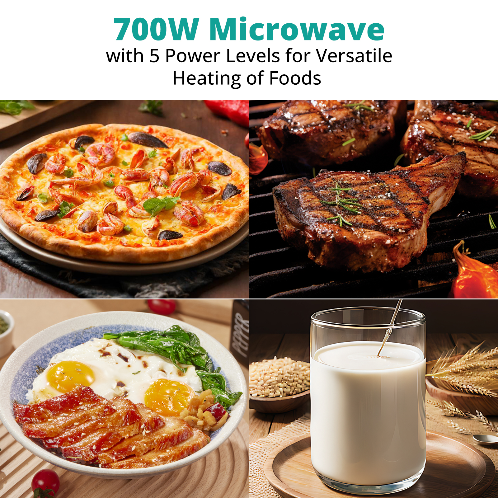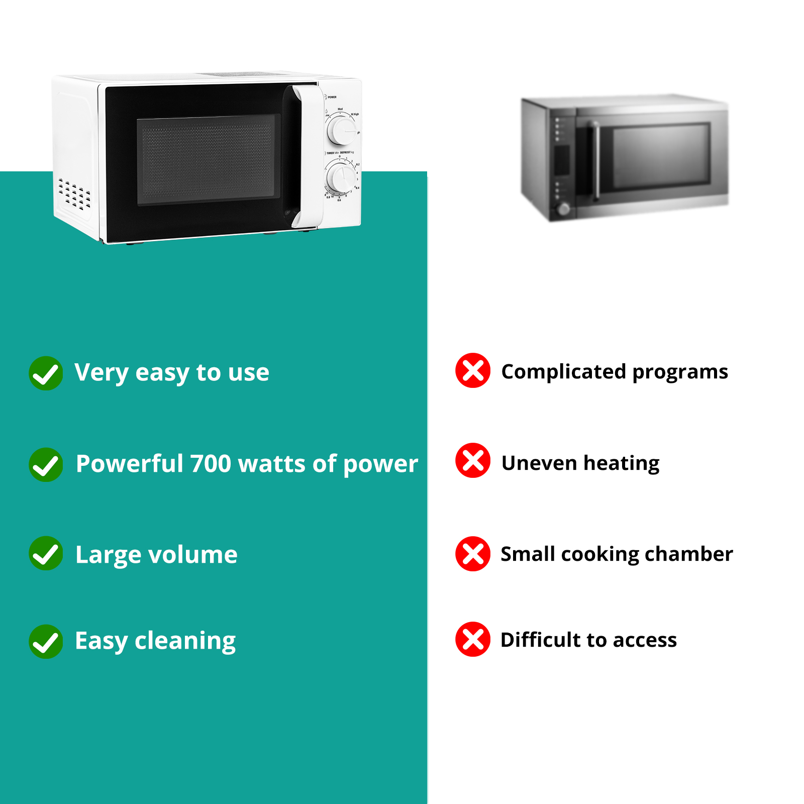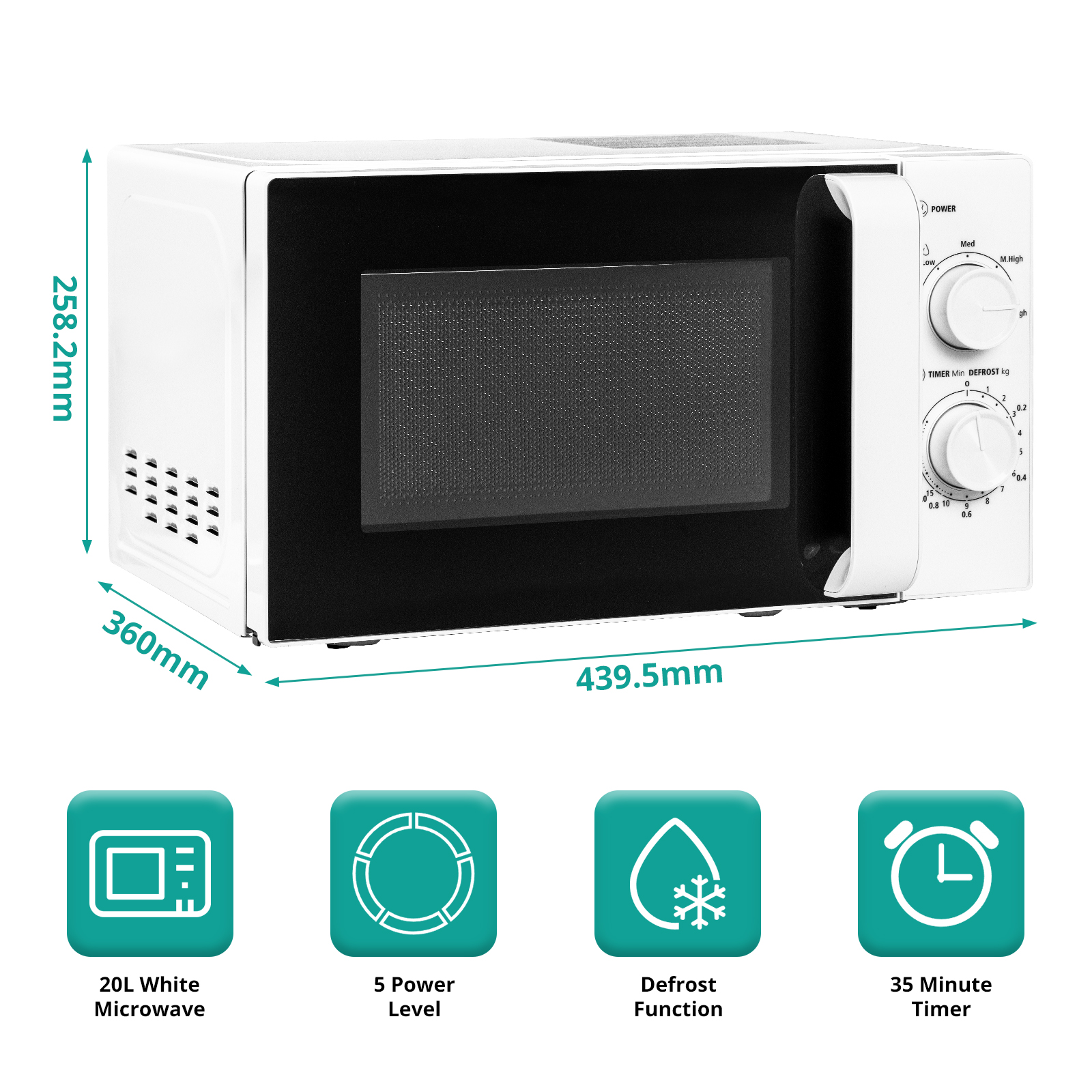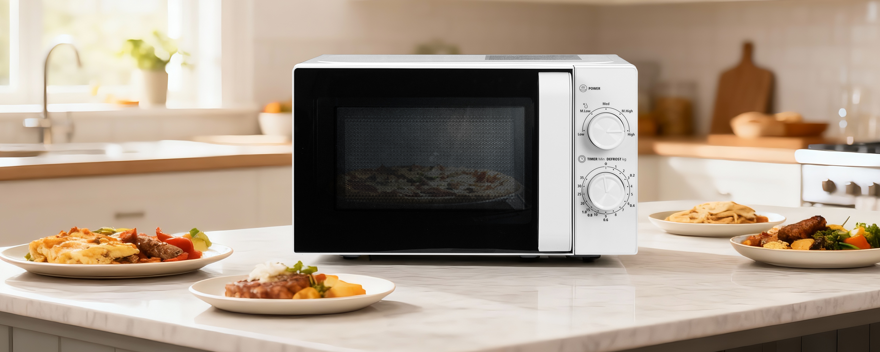 Avec un intérieur spacieux de 20 litres (y compris un plateau tournant en verre de 255 mm), il peut accueillir des assiettes, des bols et de petits récipients alimentaires et assure un réchauffage uniforme des repas, des collations ou des boissons.