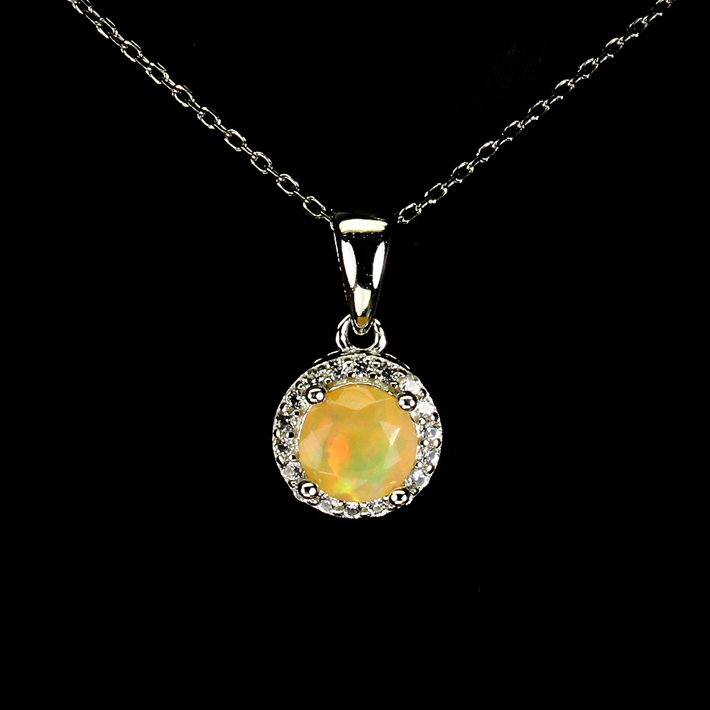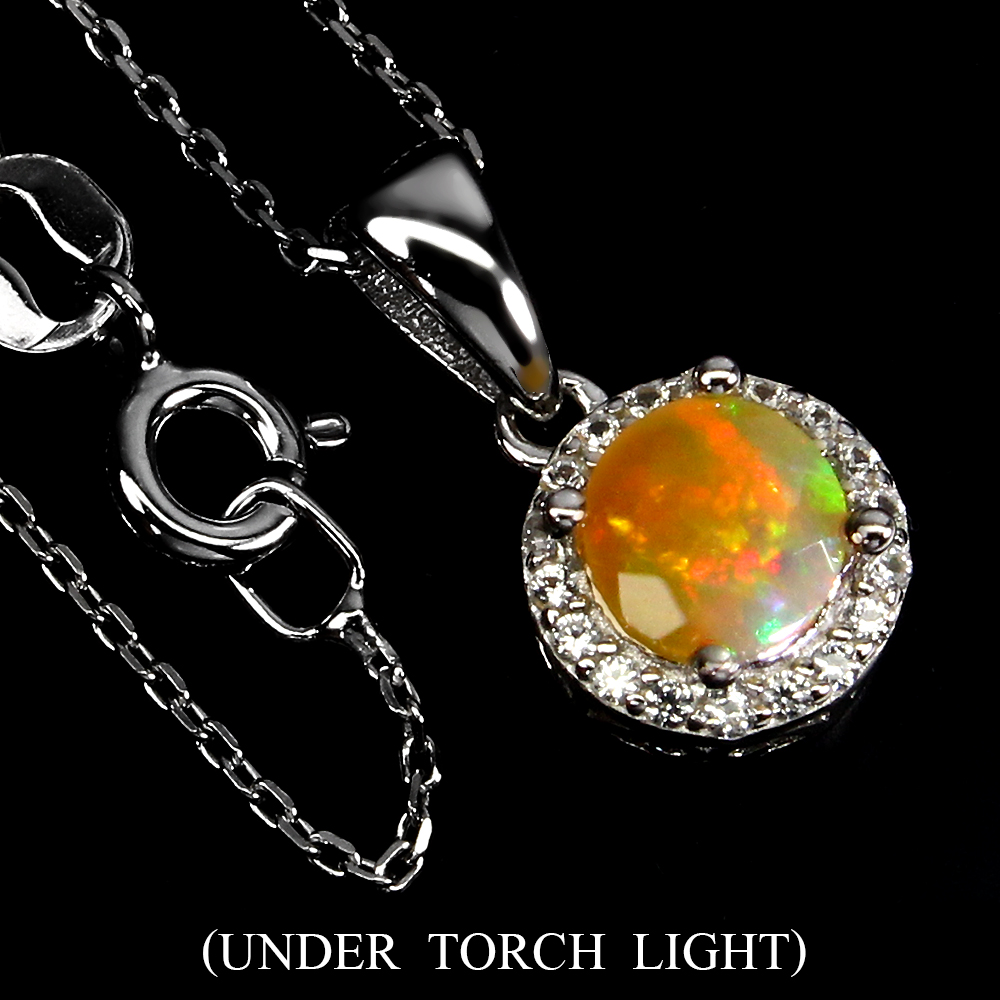 Sommer 925 Silber Halskette Rund Feuer Opal 6mm Edelstein Schmuck 45.7cm